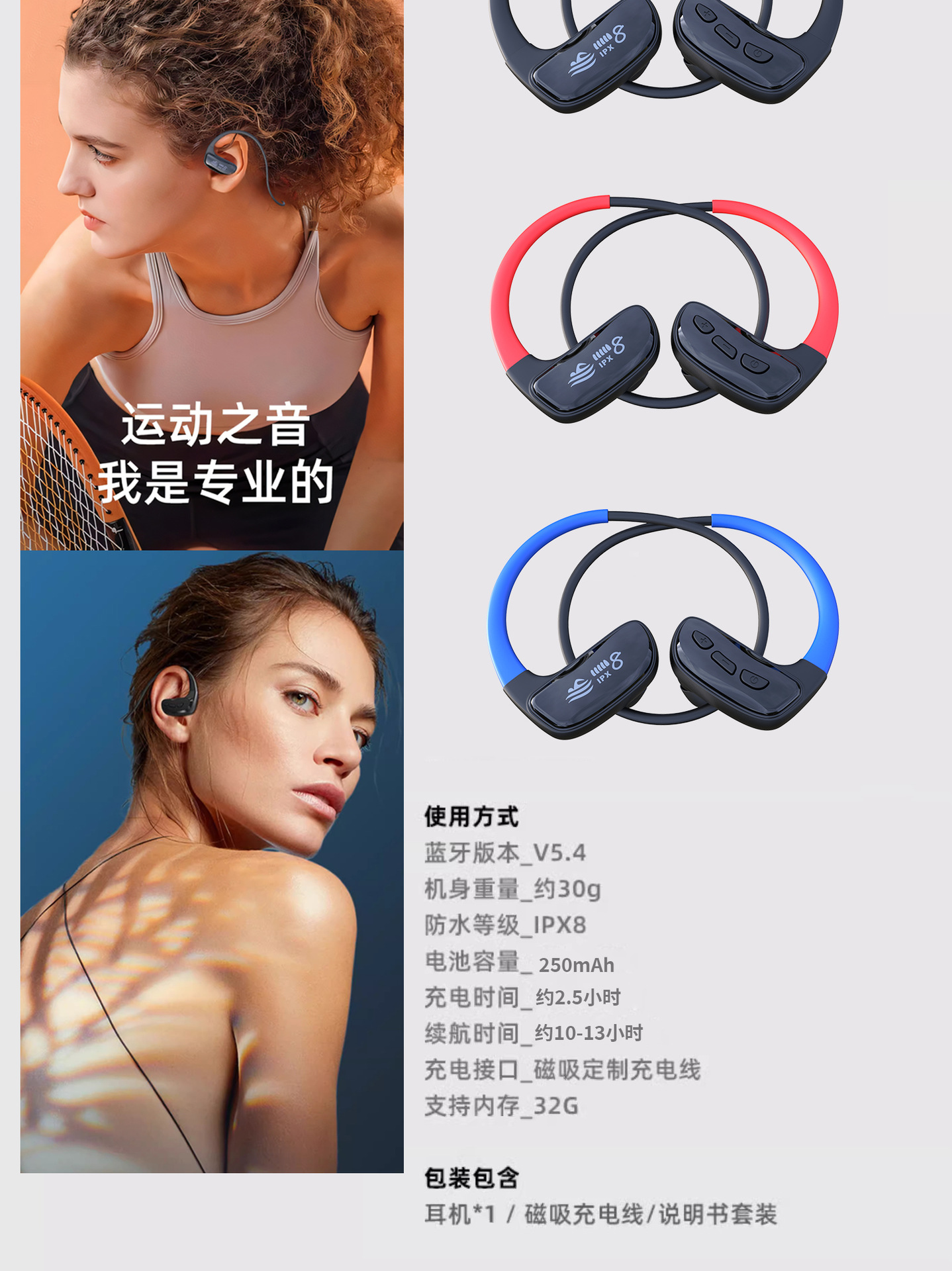 顔色 專業遊泳骨傳導耳機+·鳳羽紅+32G