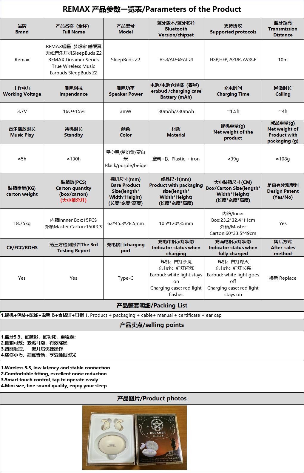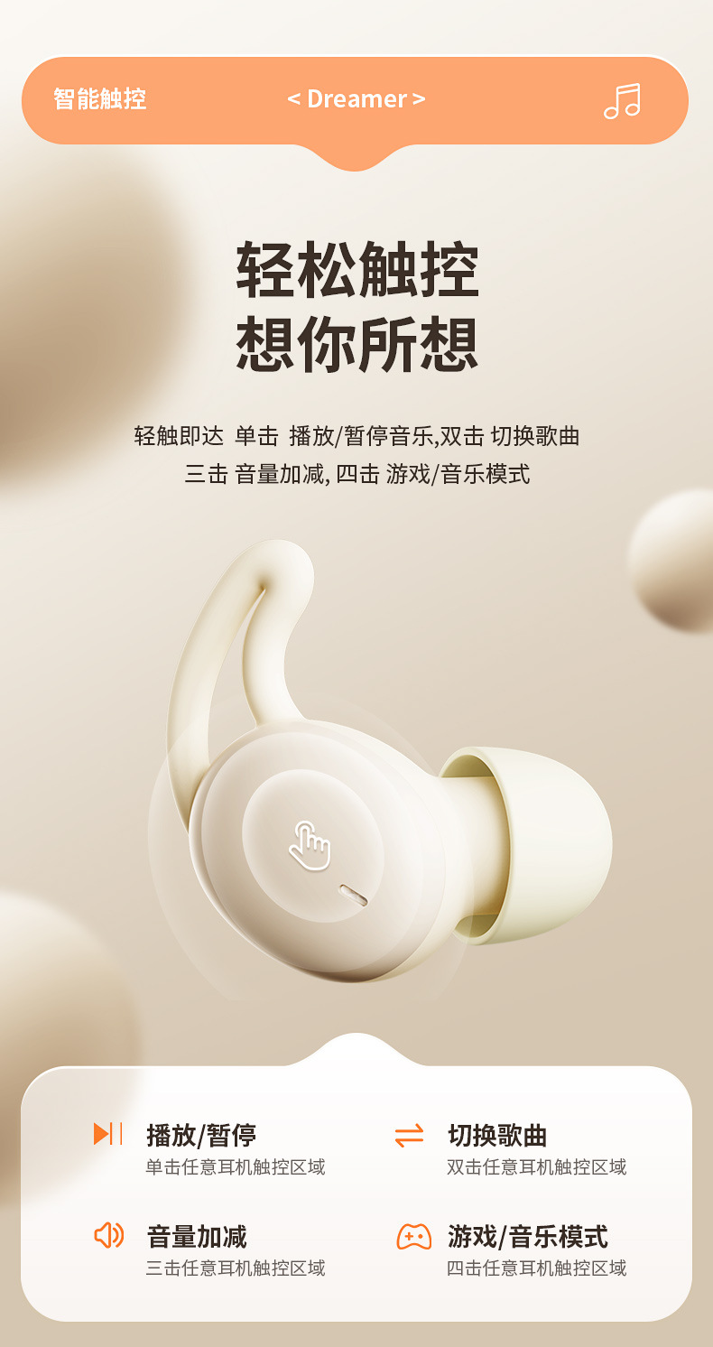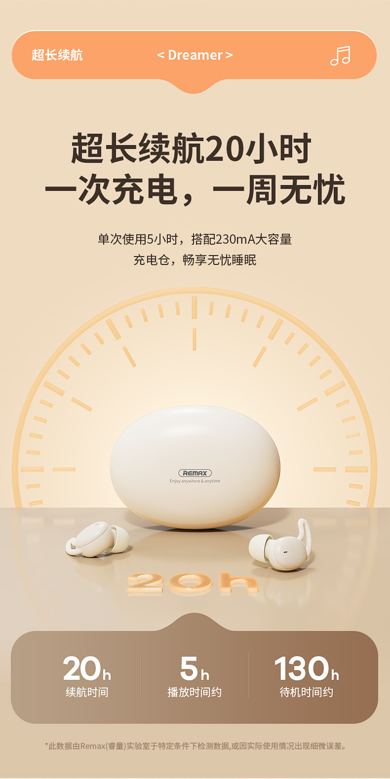 REMAX夢想家睡眠耳機TWS藍牙5.3音樂低延遲降噪親膚柔軟矽膠耳機