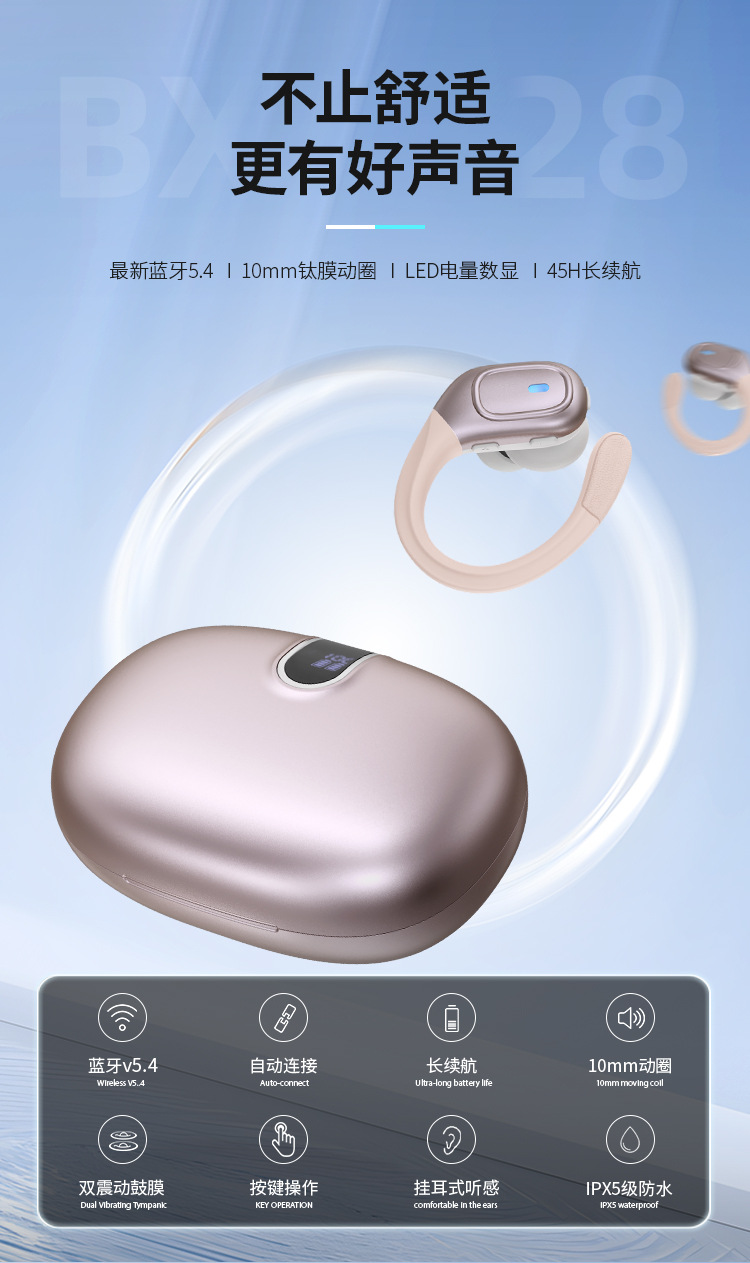 新款智能科技降噪運動防水掛耳式耳機狂甩不掉長續航無線藍牙耳機
