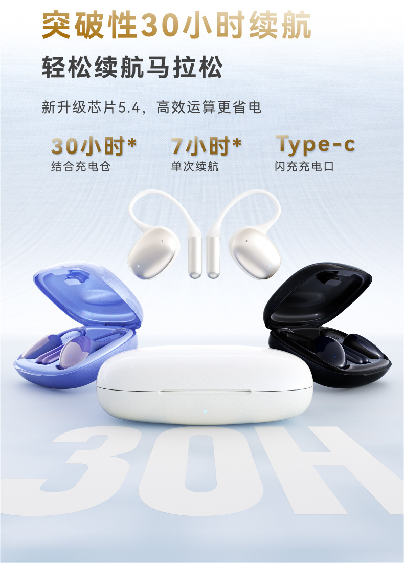 開放式藍牙耳機不入耳掛耳式跑步防水大電量超長續航運動風