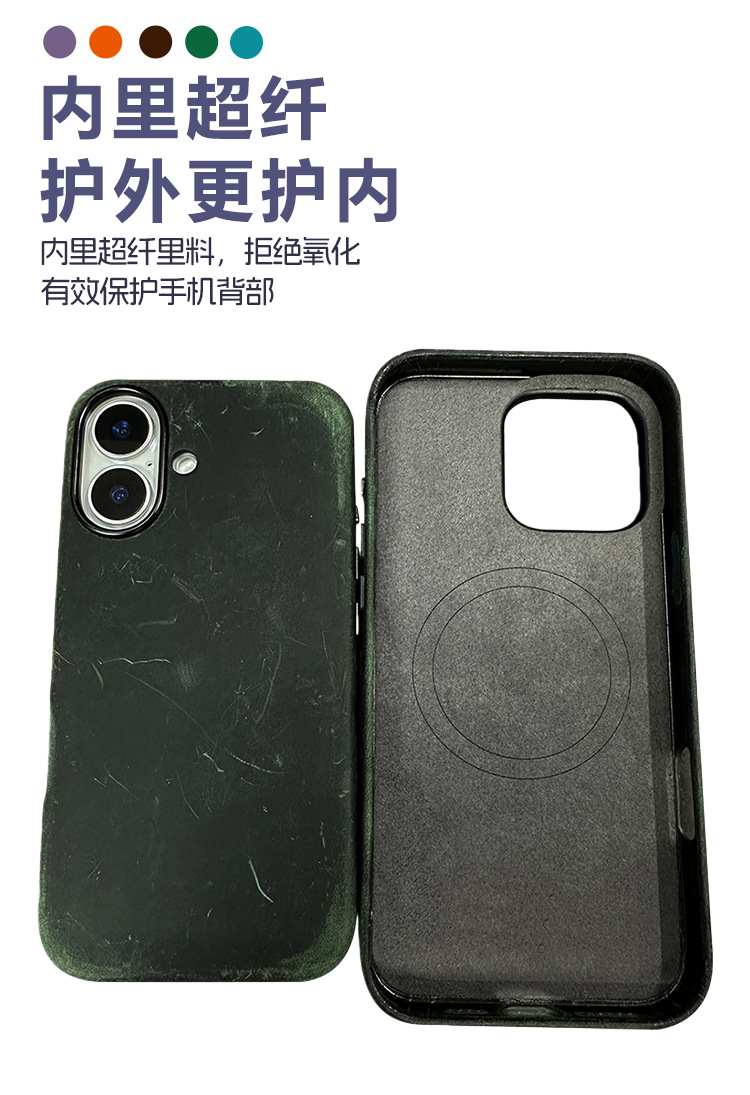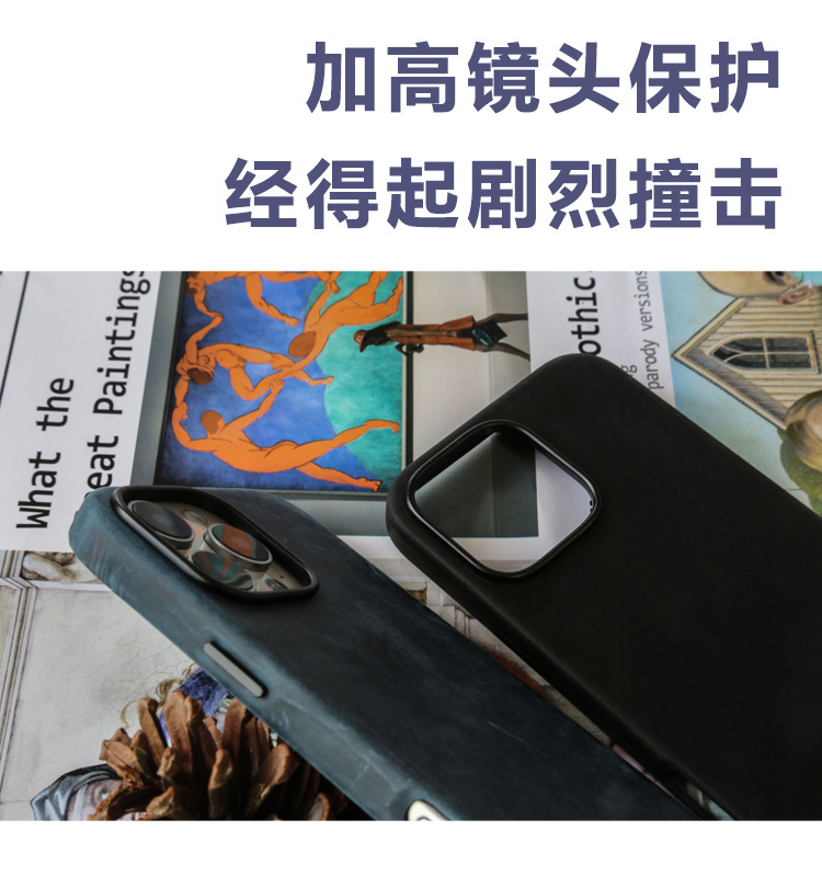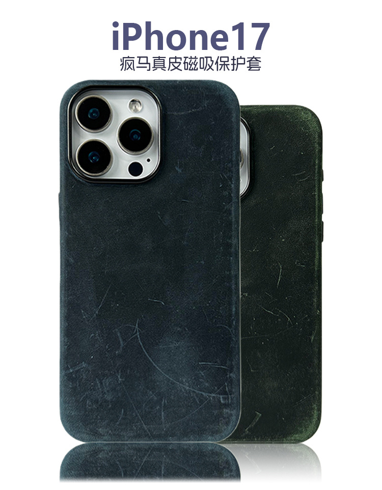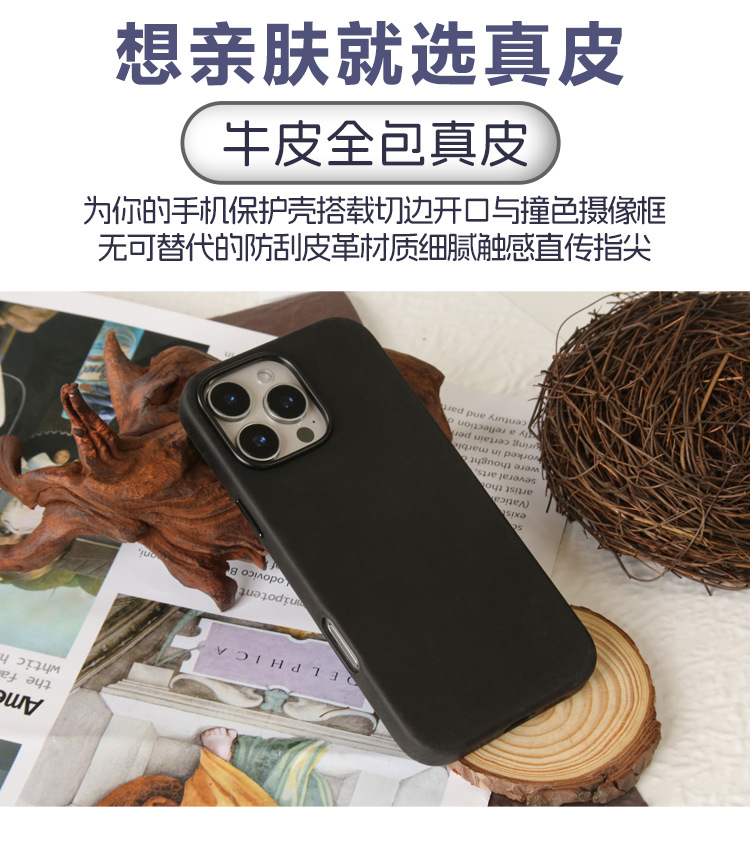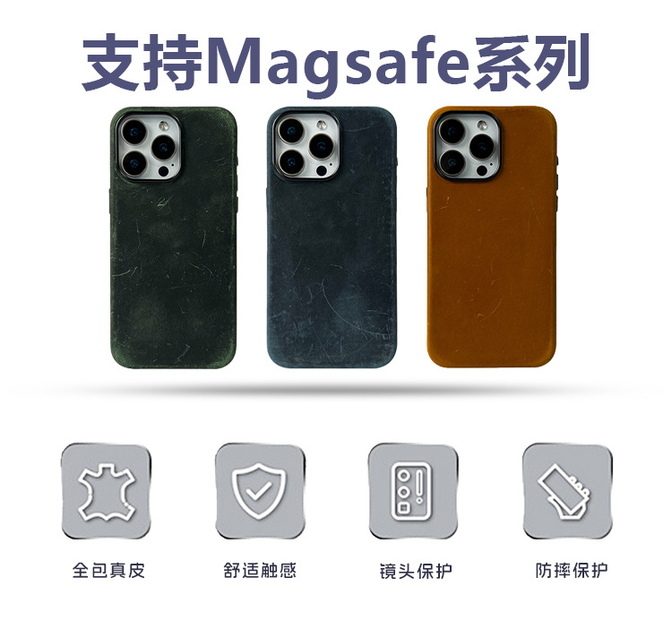 適用蘋果16promax瘋馬皮真皮全包磁吸保護防摔高級小衆蘋果手機殼