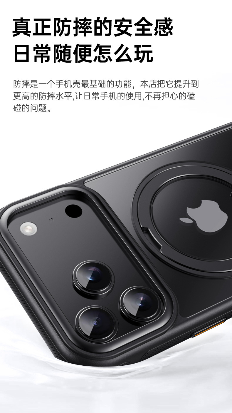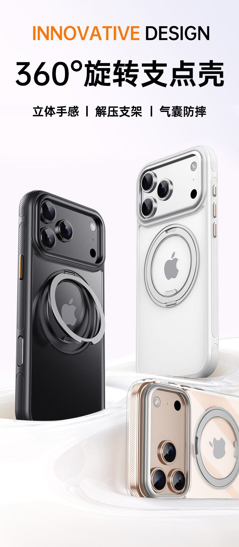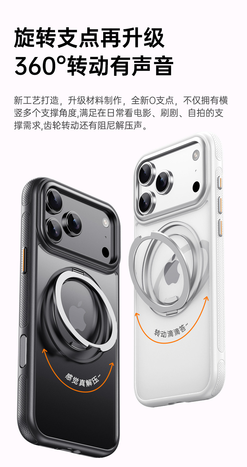 適用iPhone17Promax手機殼磁吸360旋轉齒輪支架蘋果16E/15保護套