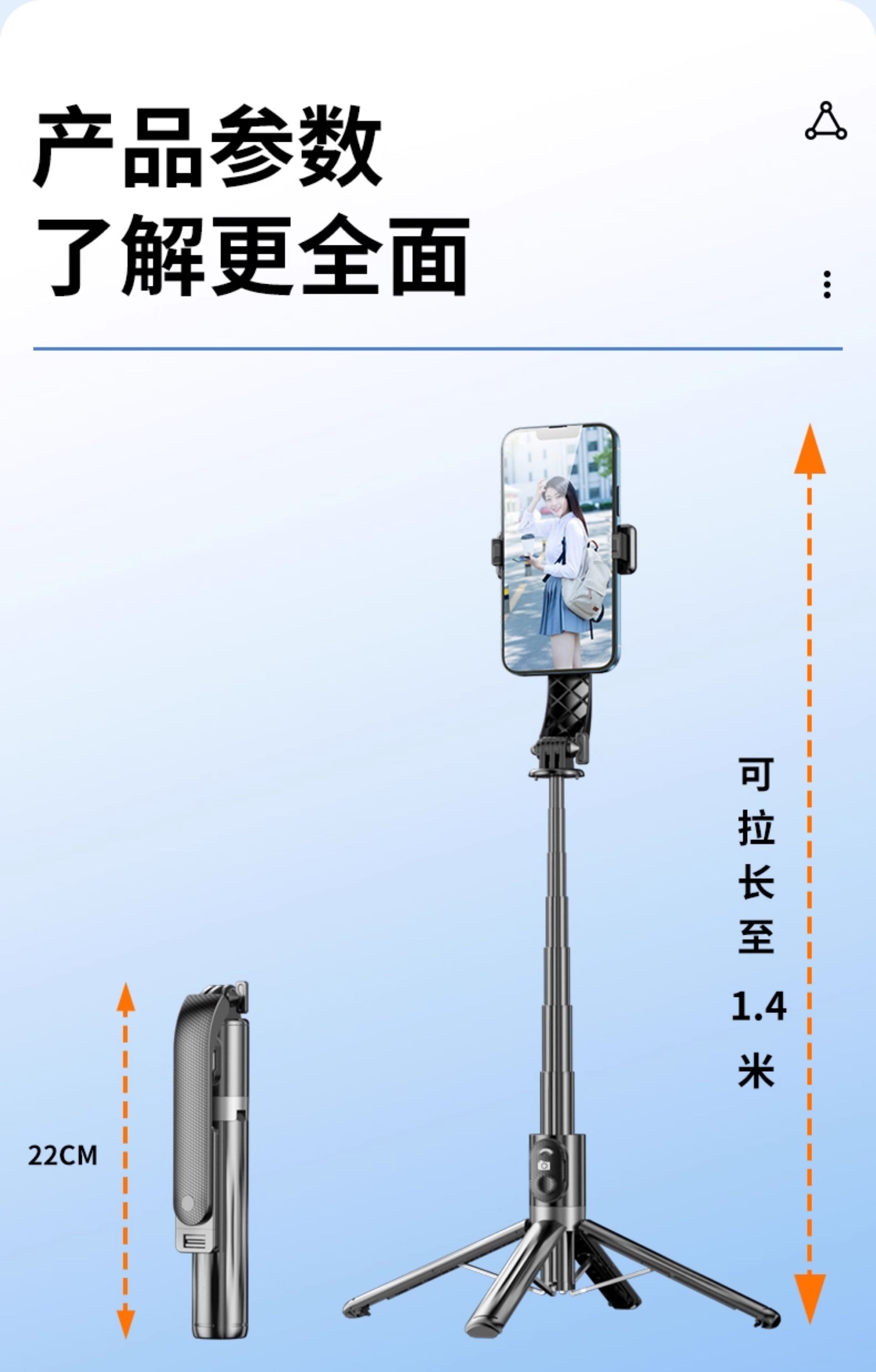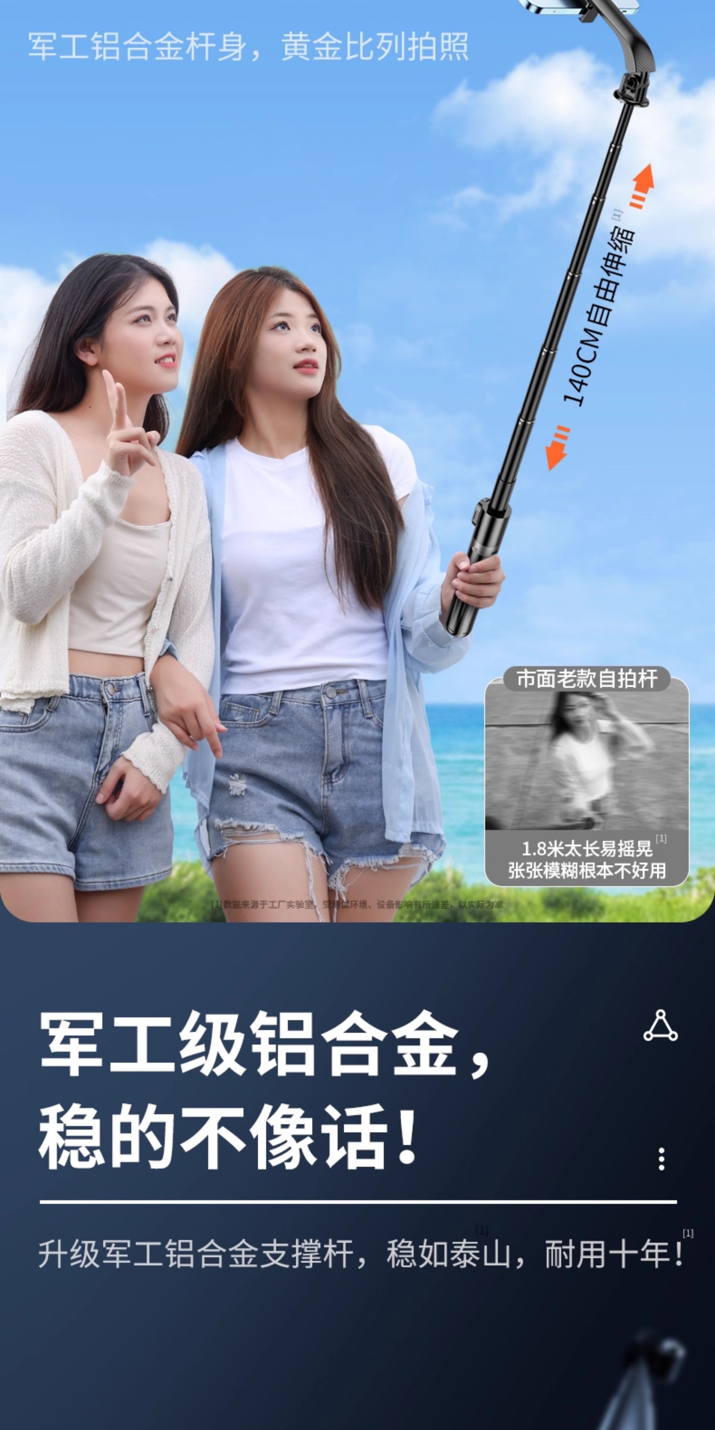 四腳超穩]2025新款自拍桿落地三腳架旅遊可攜式拍照手機vlog拍攝神器通用專用支架360度旋轉藍牙迷你多功能2024