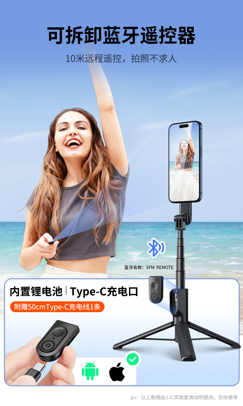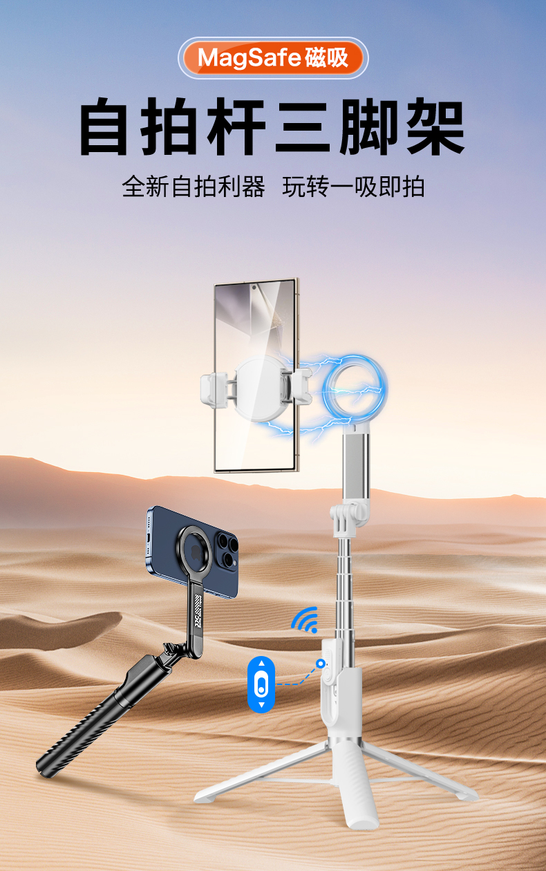 JJC MagSafe磁吸支架自拍桿適用iphone1716手機Action運動相機拍照通用360度旋轉手持藍牙vlog拍攝神器三腳架