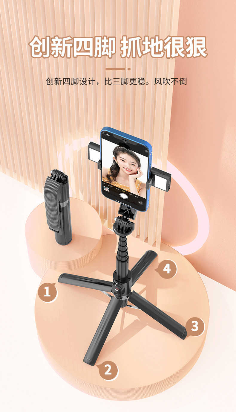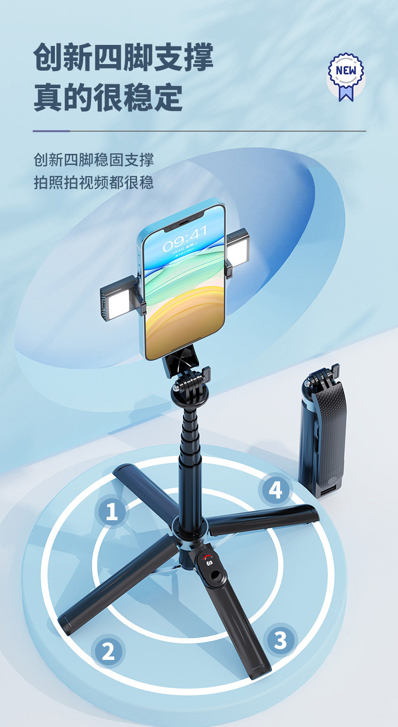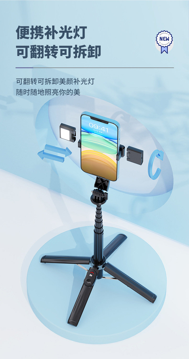 新一代1.4米手持自拍桿】四腳架自拍桿手機通用架防抖支架拍照神器手機一體式美顔燈藍牙遙控vlog旅行可攜式桿