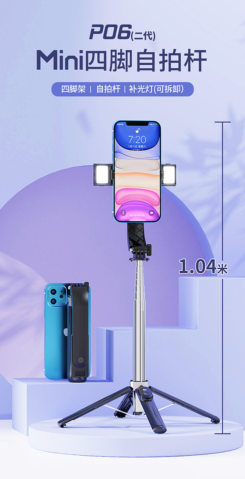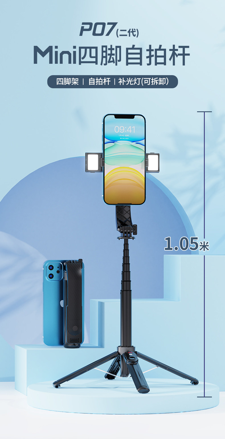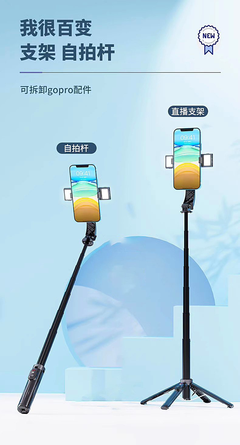 新一代1.4米手持自拍桿】四腳架自拍桿手機通用架防抖支架拍照神器手機一體式美顔燈藍牙遙控vlog旅行可攜式桿