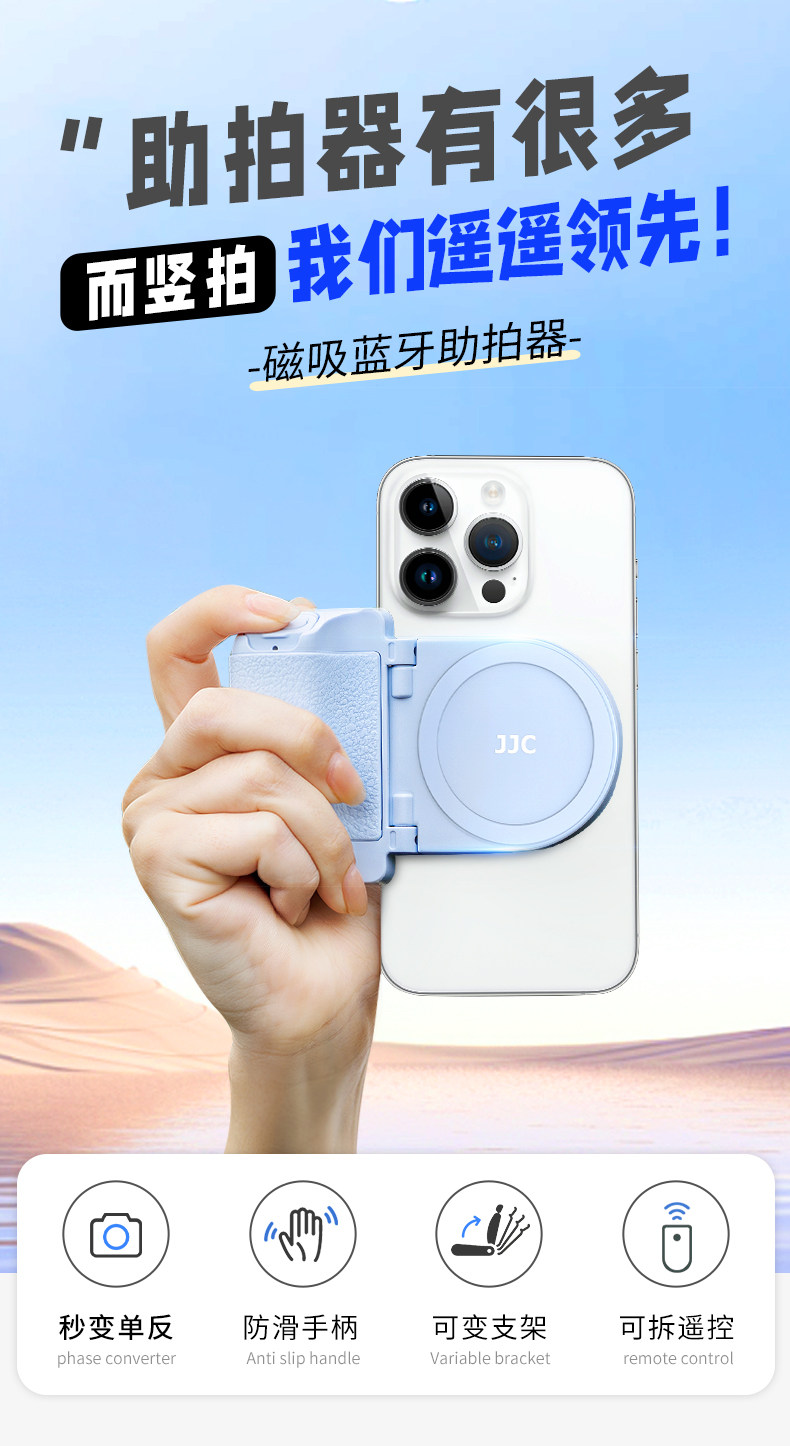 JJC 手機藍牙助拍器適用蘋果iphone17/16華爲Magsafe磁吸支架無線遙控拍照手持手柄穩定器自拍防抖攝影拓展