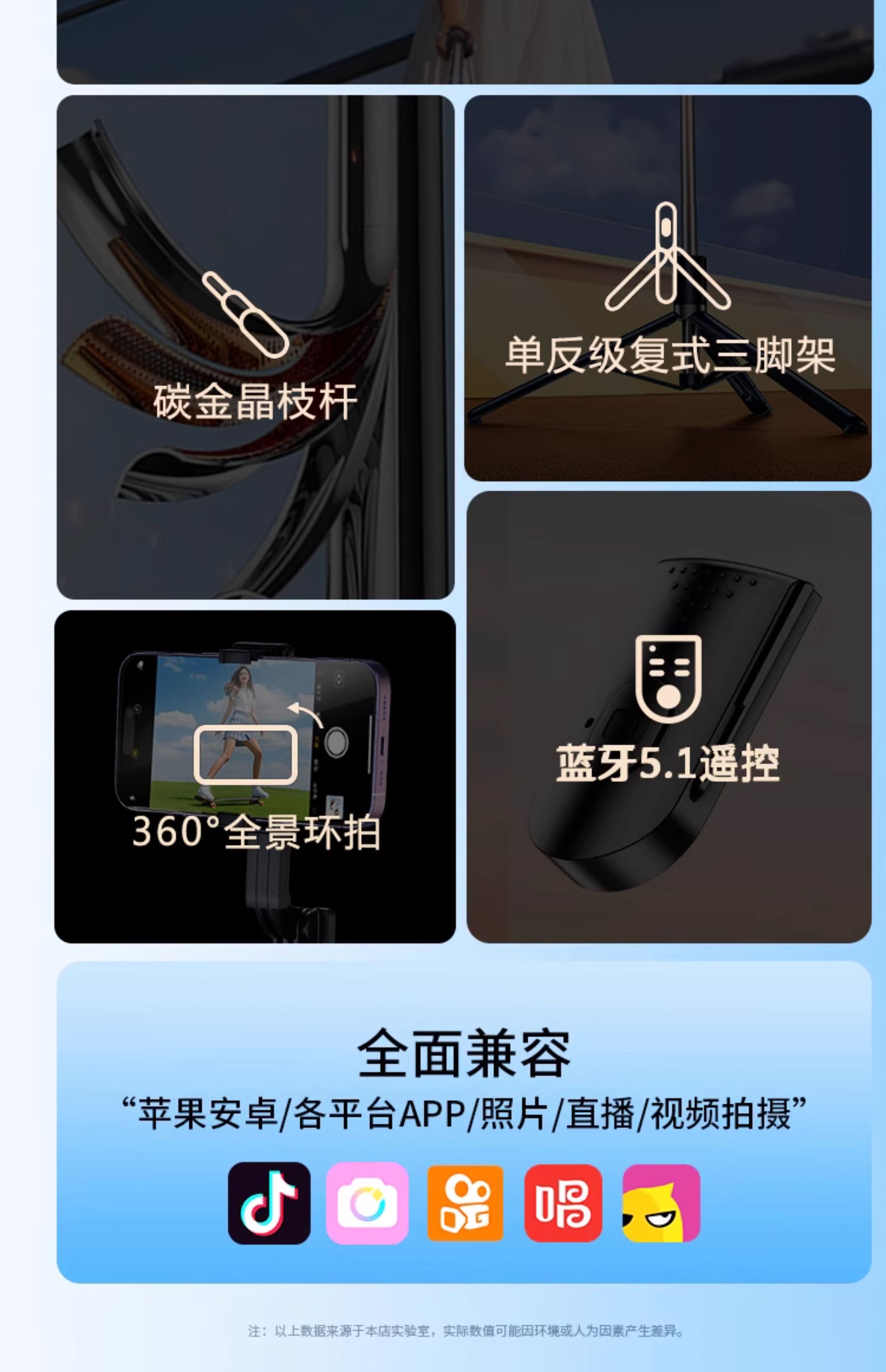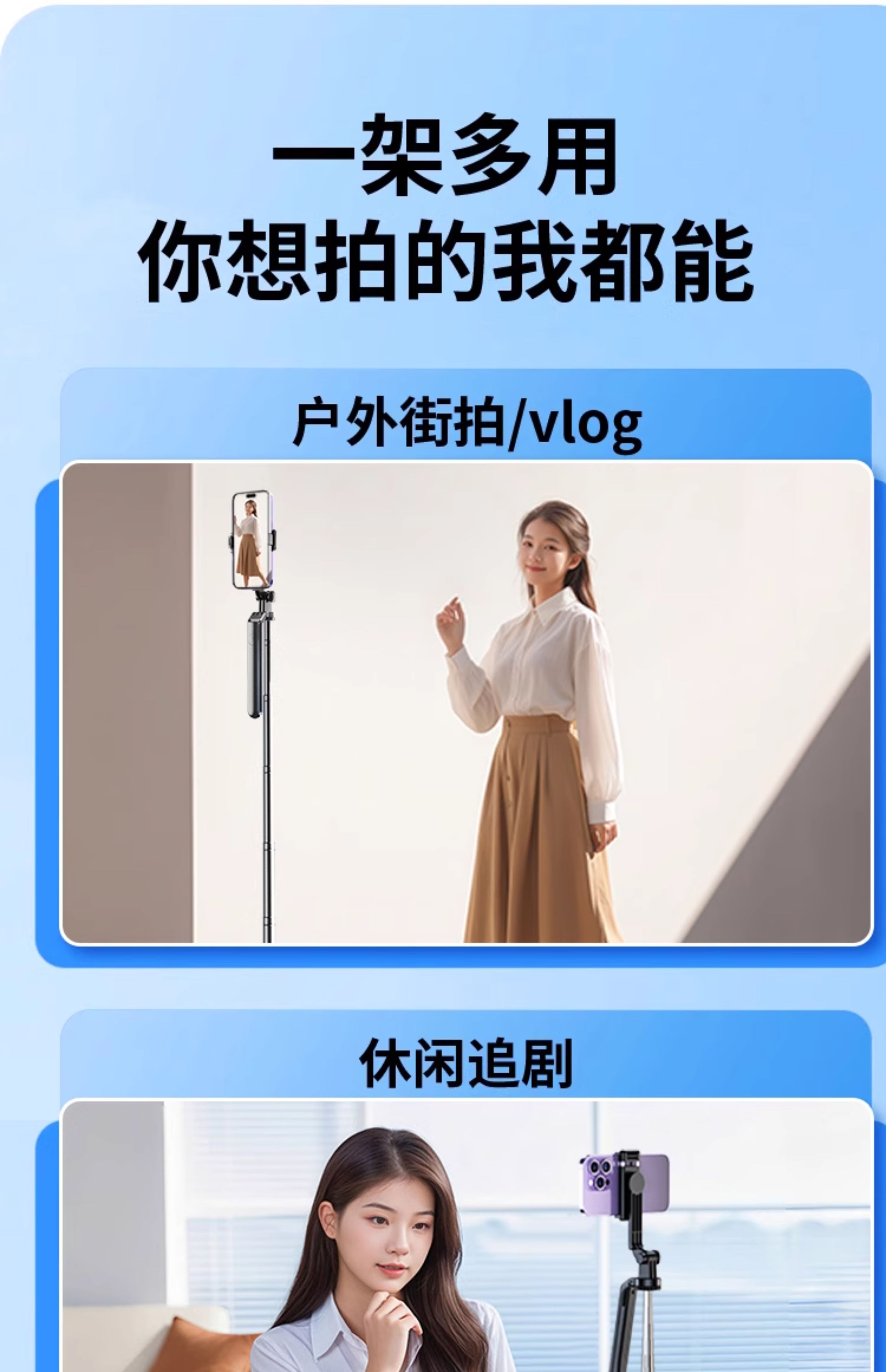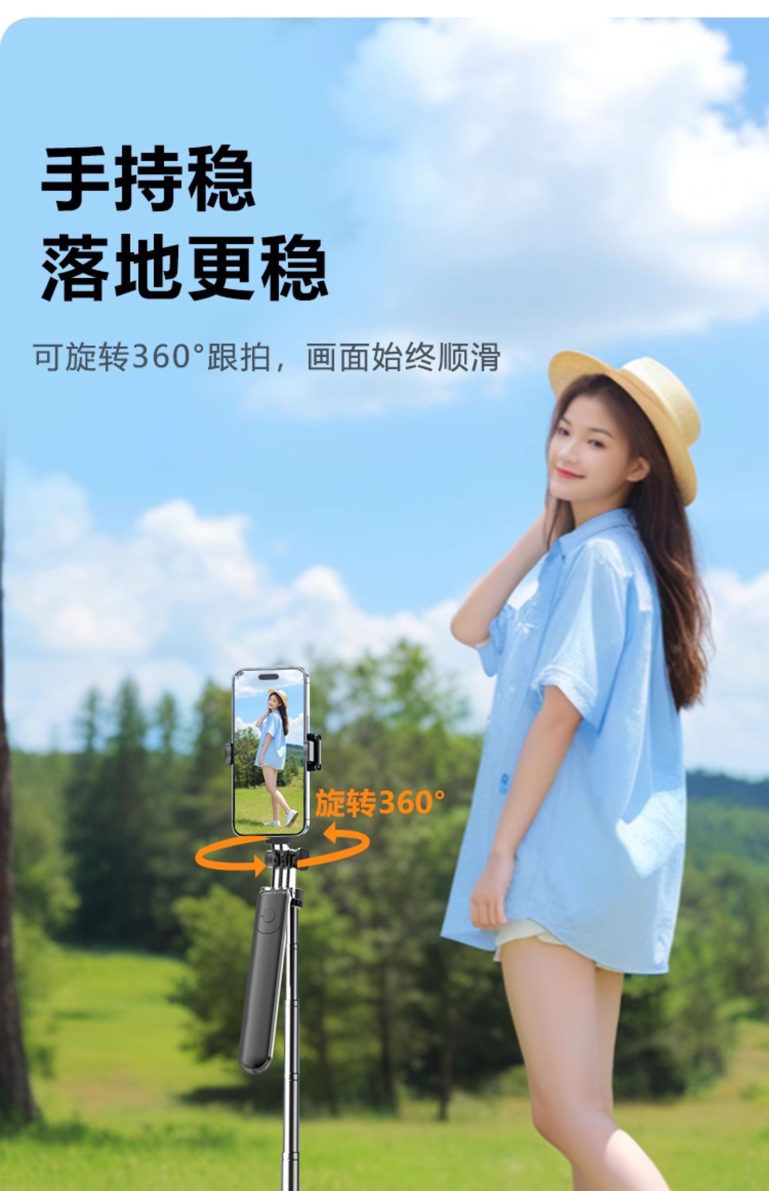 自拍桿旅遊可攜式落地三腳架手機360度旋轉2025新款通用多功能手持防抖雲台神器適用小米華爲蘋果專用支架