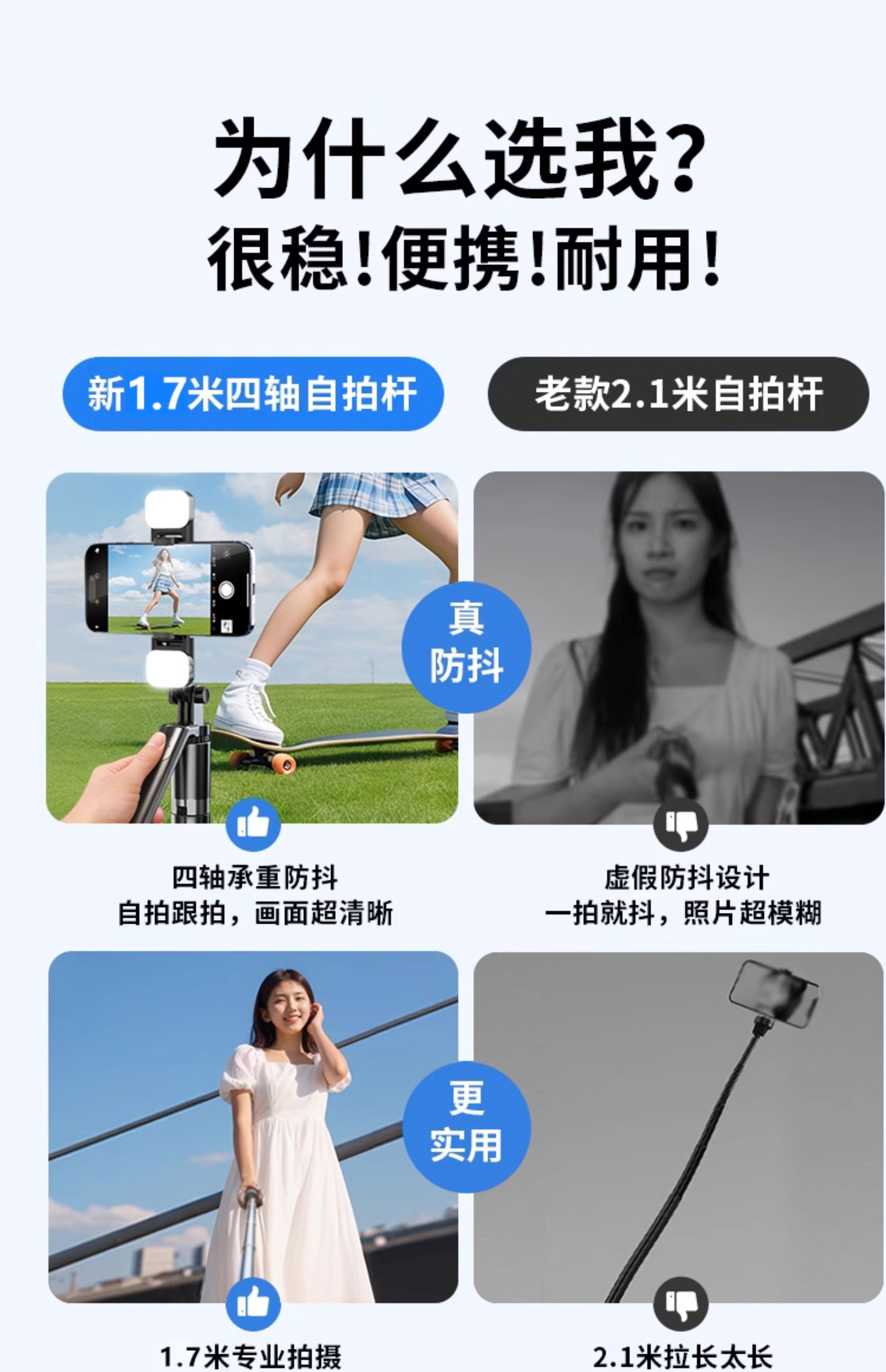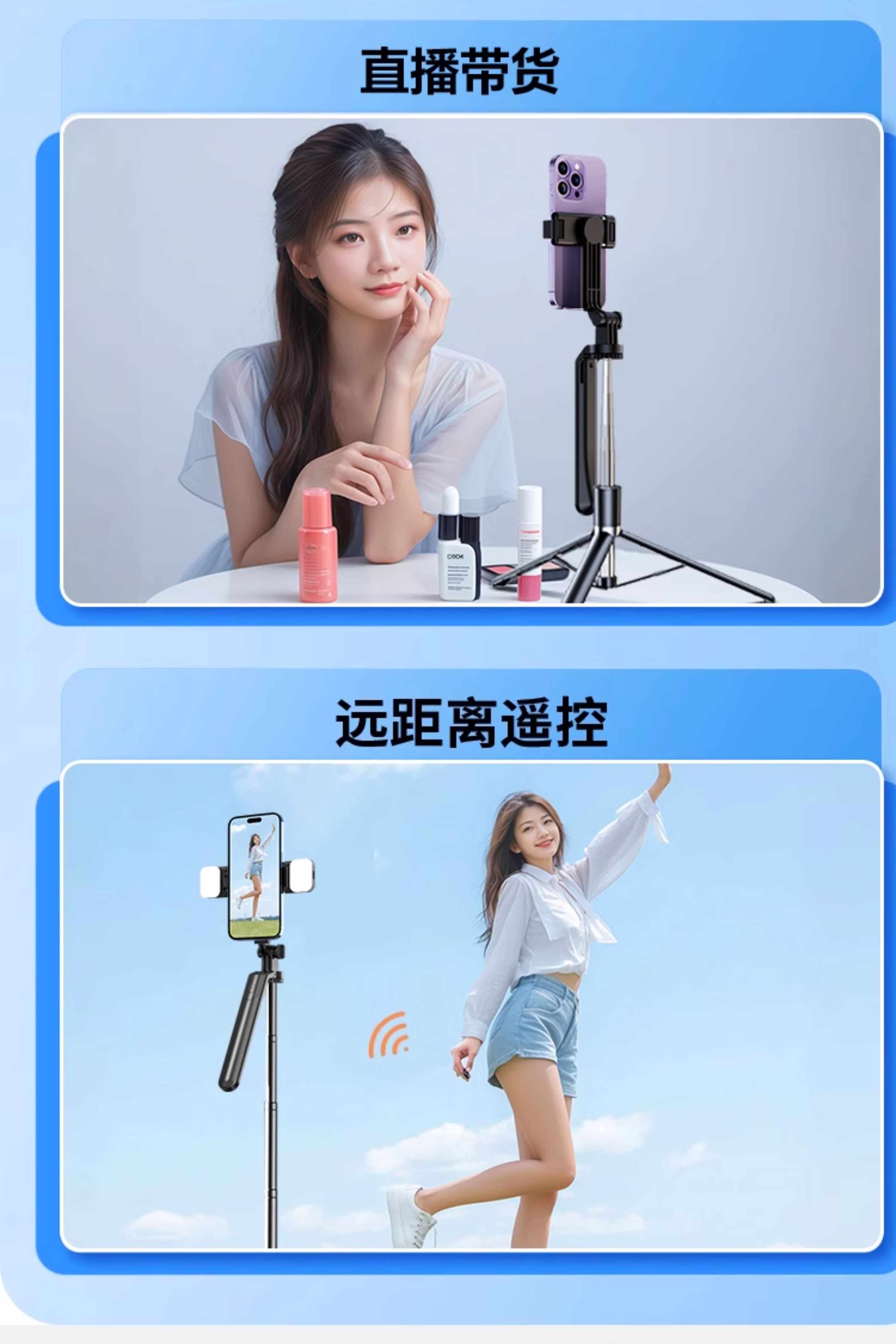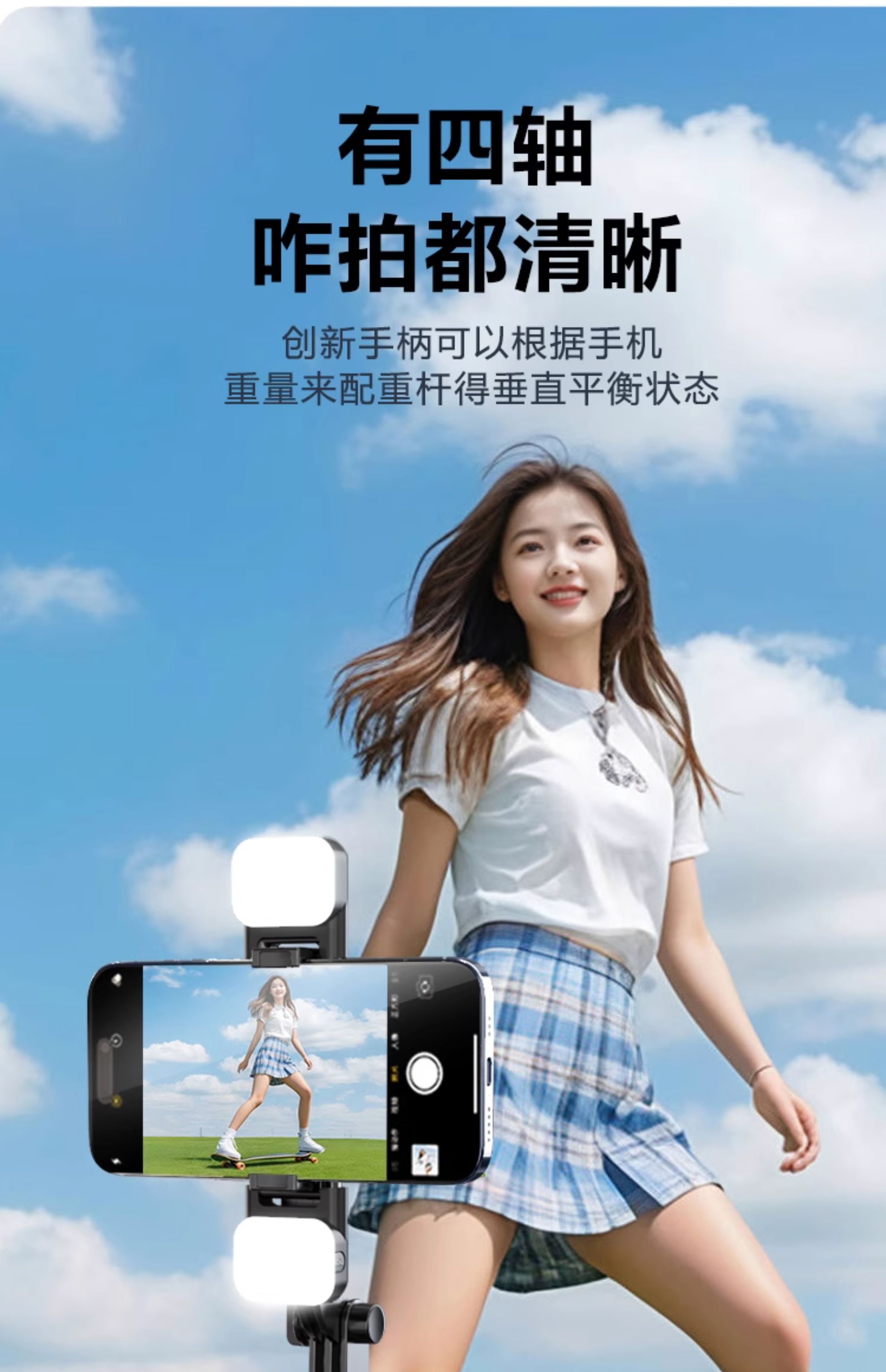 自拍桿旅遊可攜式落地三腳架手機360度旋轉2025新款通用多功能手持防抖雲台神器適用小米華爲蘋果專用支架
