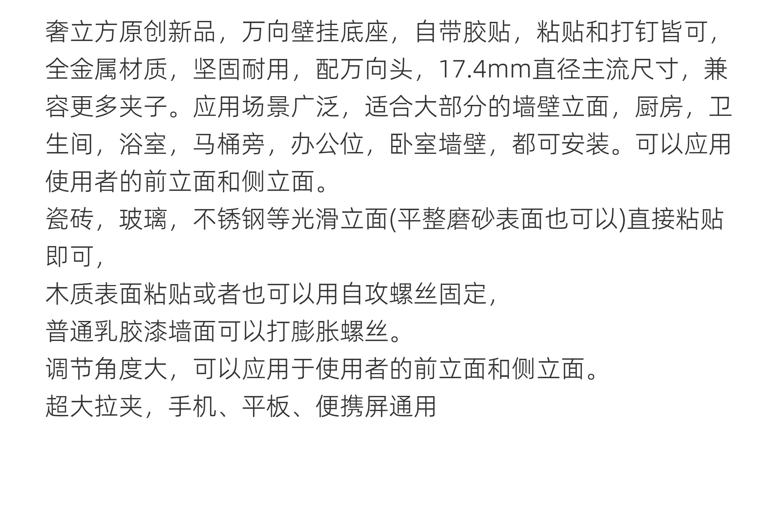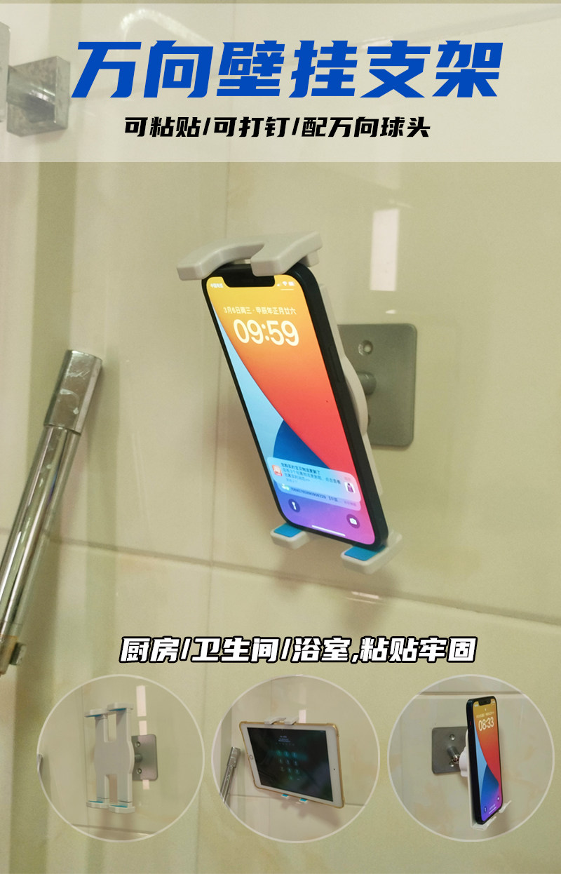 奢立方壁掛手機支架平板電腦可攜式屏牆壁浴室廚房衛生間萬向頭免釘
