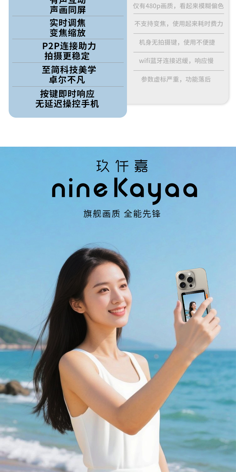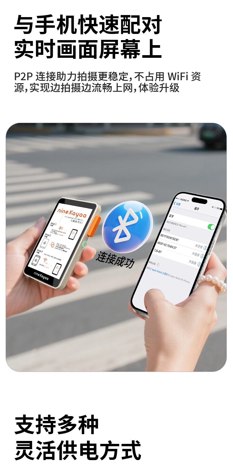 NINEKAYAA手機無線圖傳自拍後置攝影機vlog投影攝影自拍旅拍自媒體顯示屏蘋果抖音新款自拍桿自拍神器投影