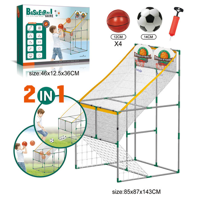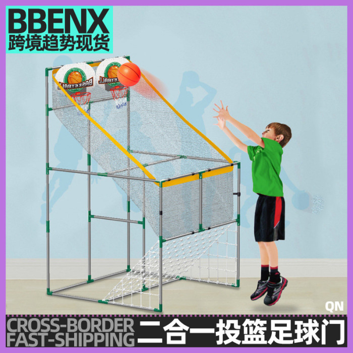雙人籃球足球二合一室內投籃機可攜式可移動組裝足球網籃球框室內外