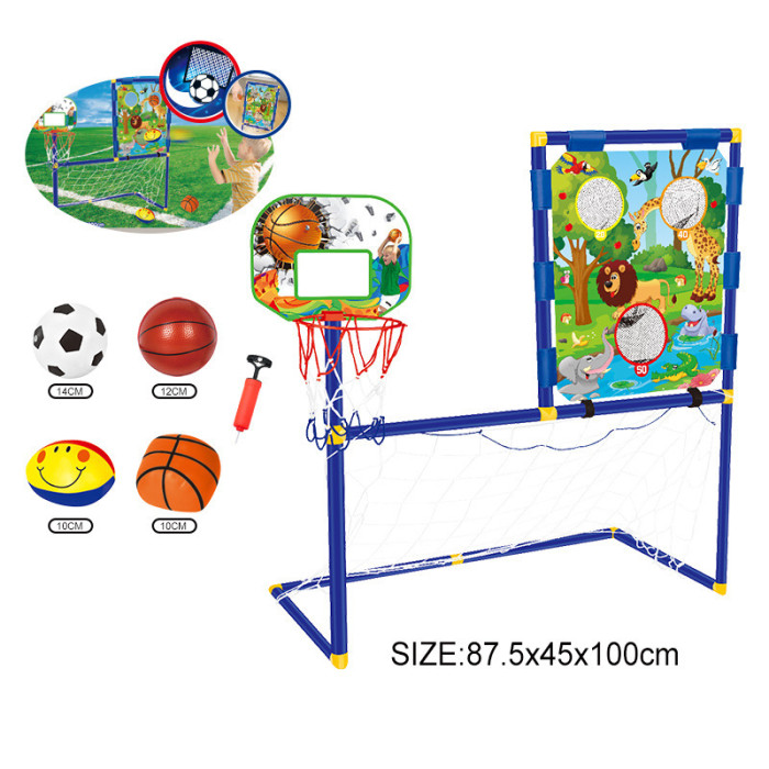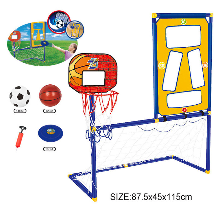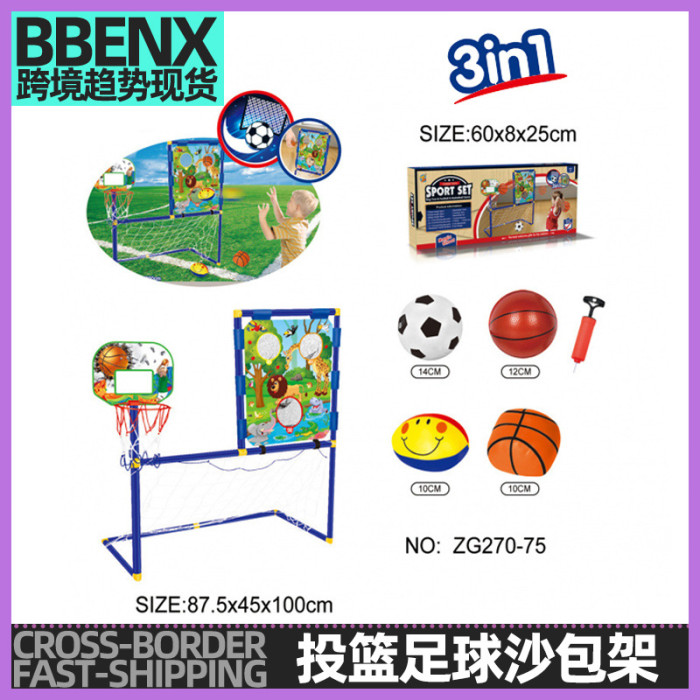 兒童三合一籃球架足球門沙包架飛盤投擲遊戯飛碟親子戶外運動玩具