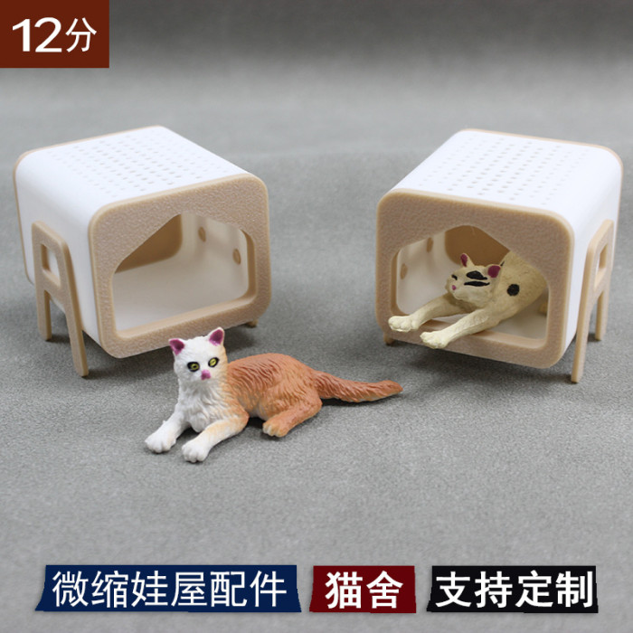 1:12娃娃屋配件迷你貓窩微縮貓捨寵物用品家居擺設道具微縮模型