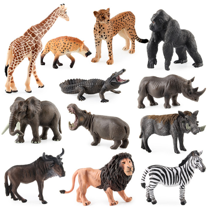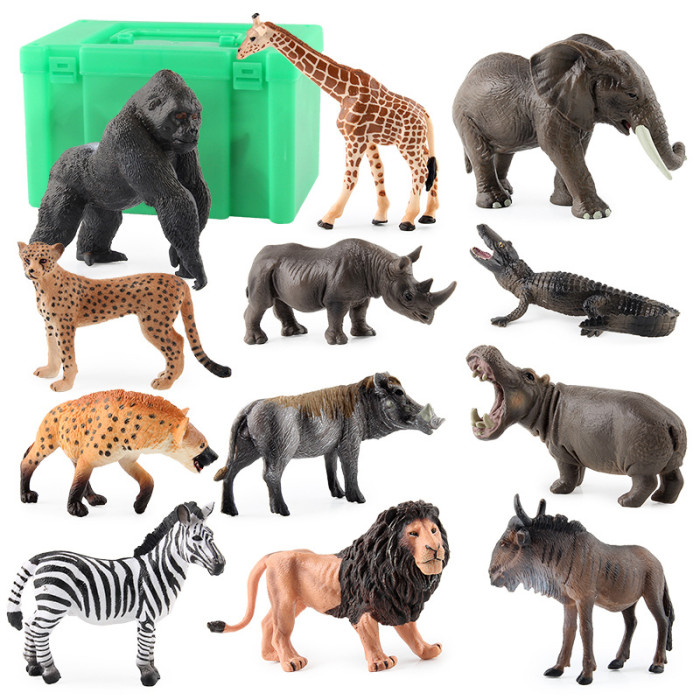 12件套塑膠動物收納盒套裝 斑馬大象長頸鹿動物模型擺件