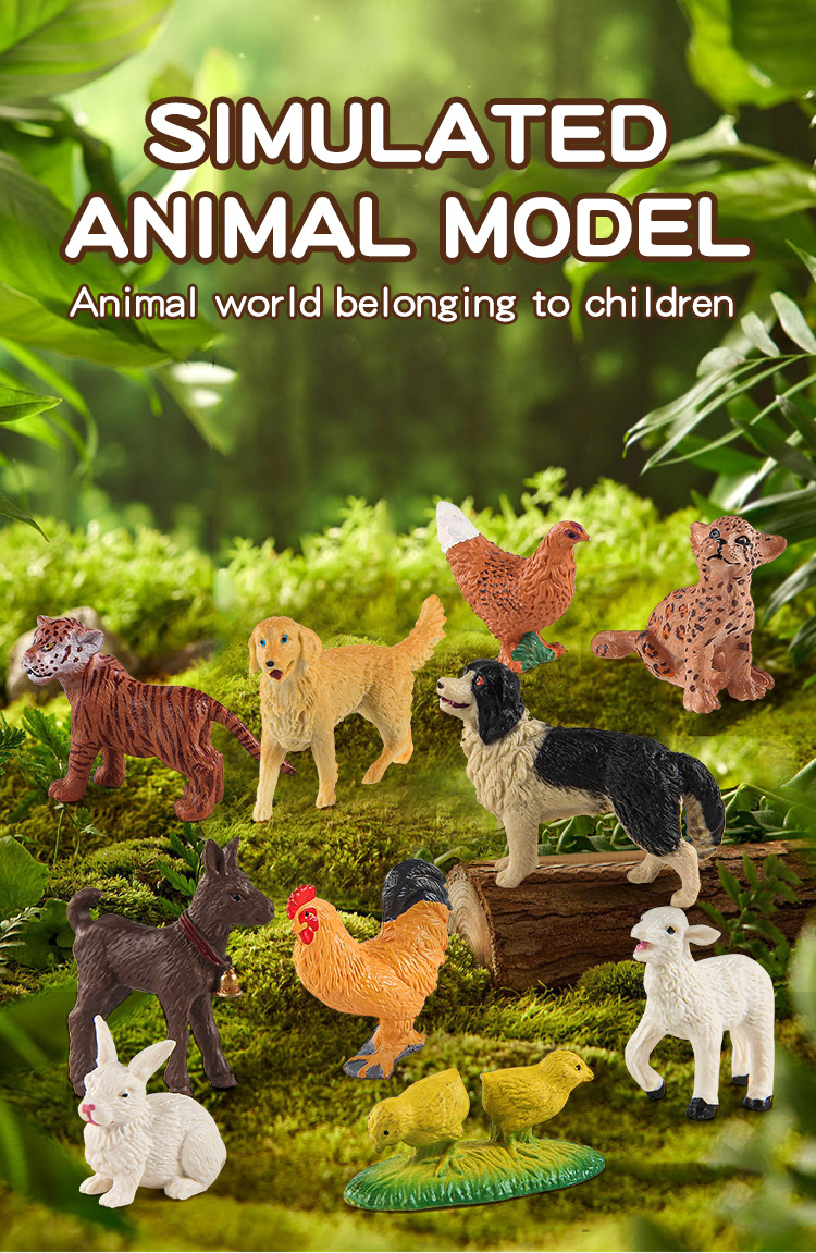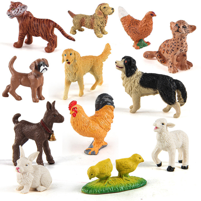 兒童桌面沙盤農場迷你動物模型奶牛綿羊兔子狗實心靜態雞鴨鵞擺件