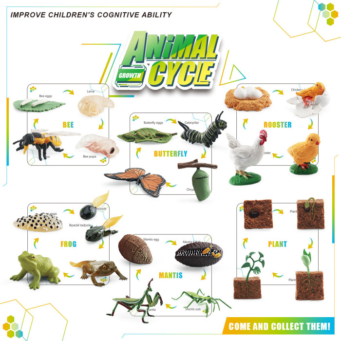 家仿真植物蝴蝶蜜蜂青蛙模型動植物成長周期收納盒套裝玩具