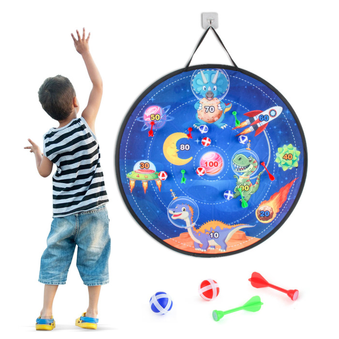 家兒童雙面飛鏢板帶支架可折曡飛鏢投擲粘球盤親子互動玩具