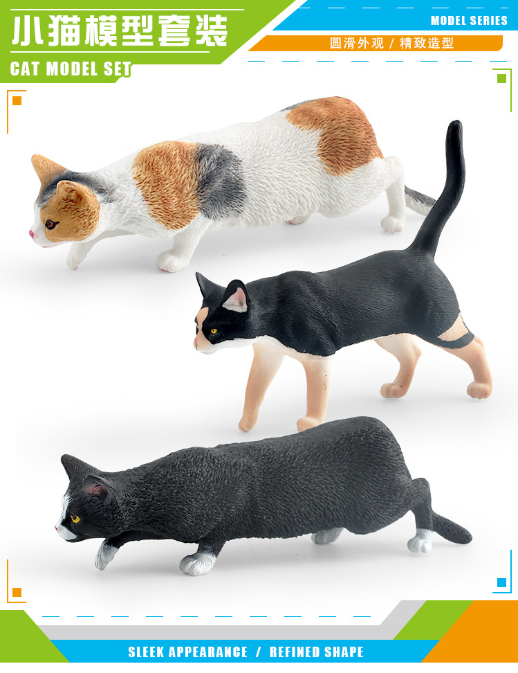 仿真寵物貓咪動物模型黑貓三色貓橘貓美國短毛貓桌面擺件玩具