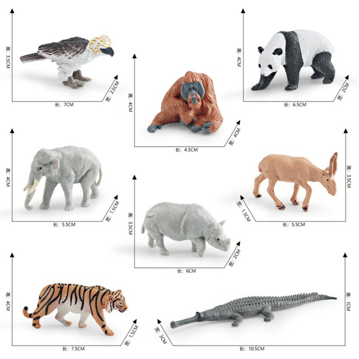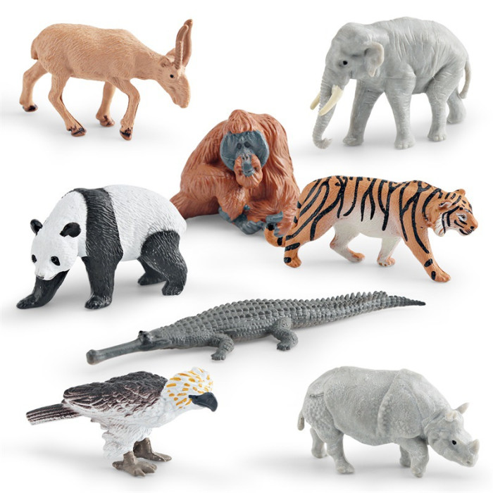 仿真亞洲動物模型亞洲象猩猩熊貓印度犀牛老虎食魚鱷靜態擺件
