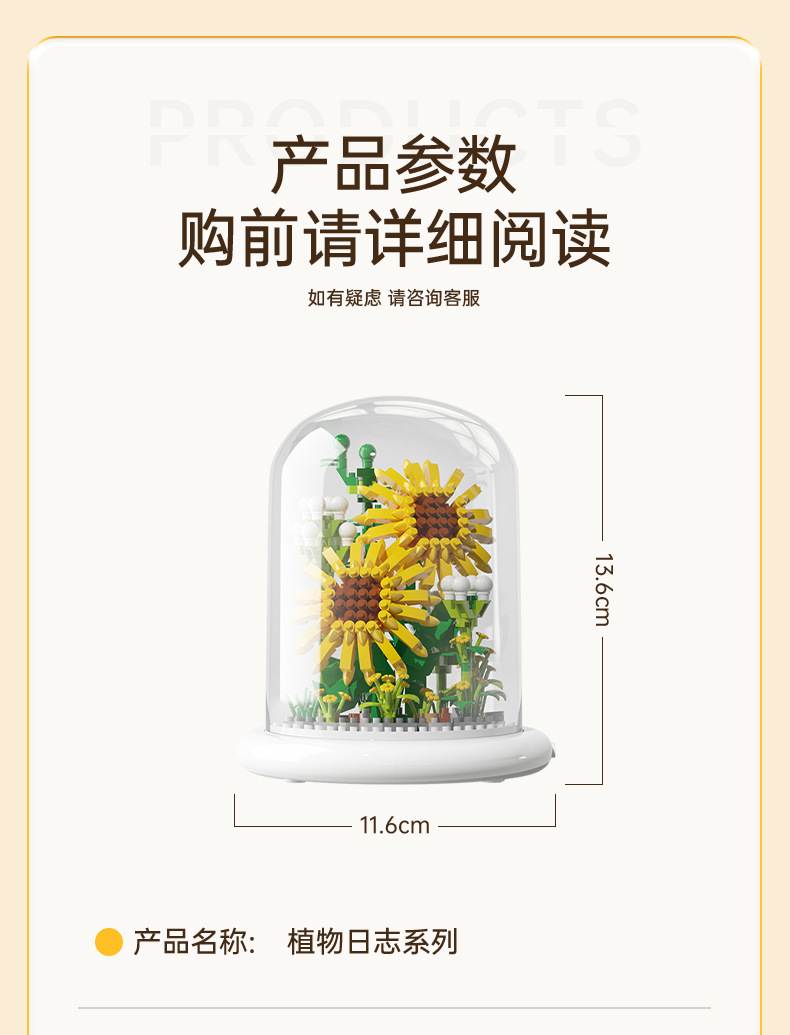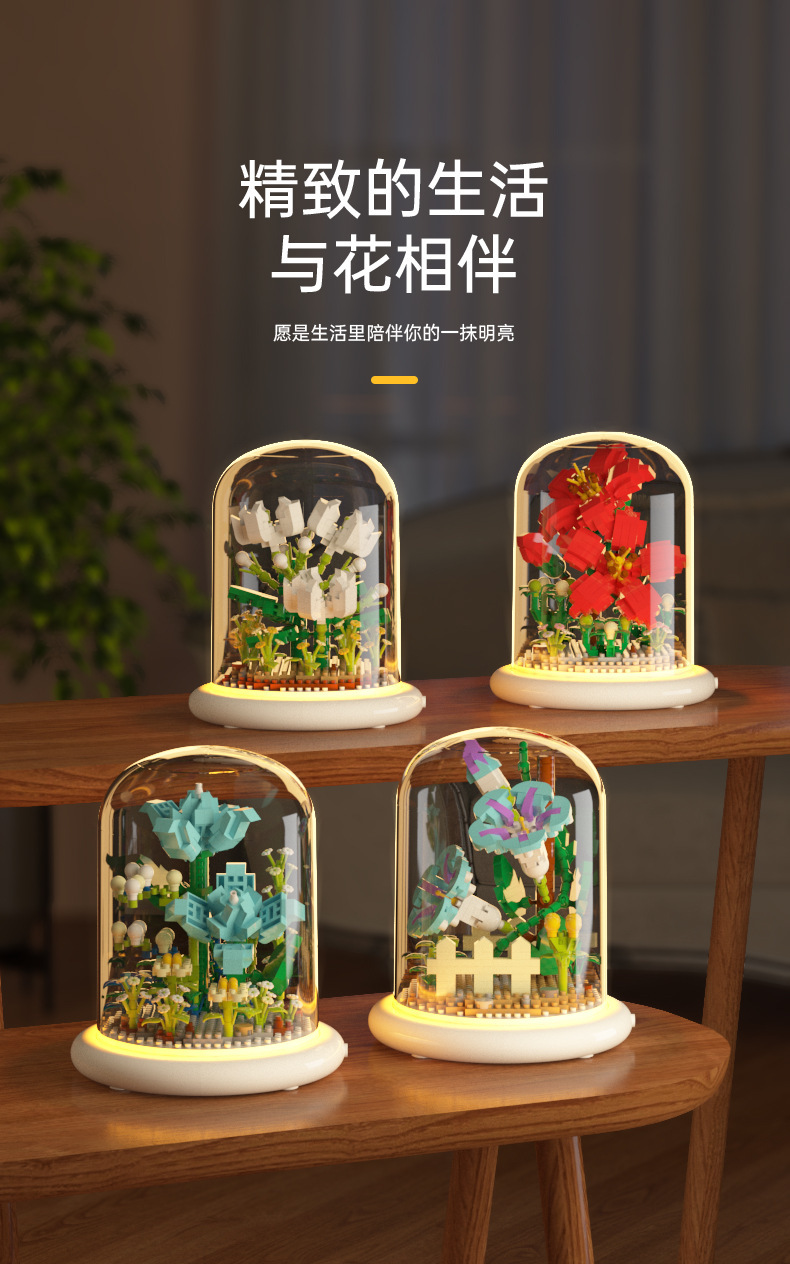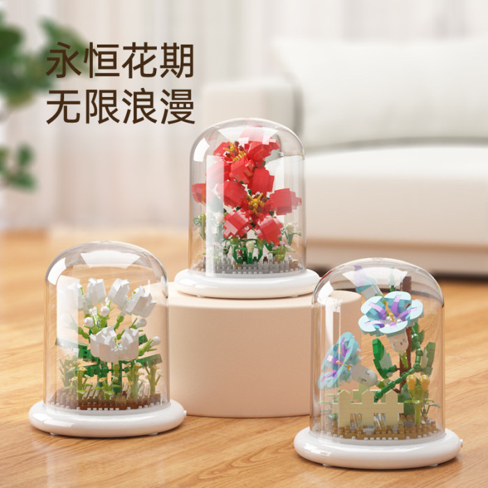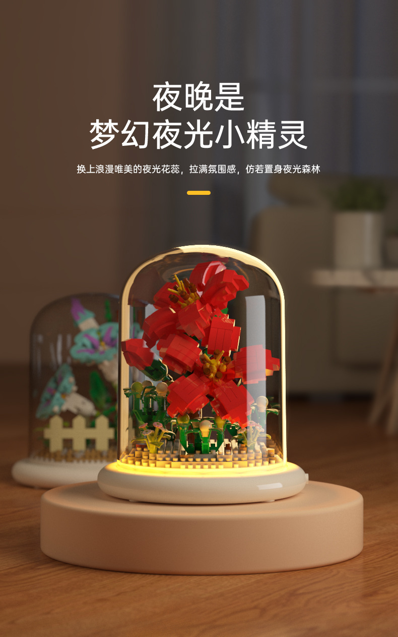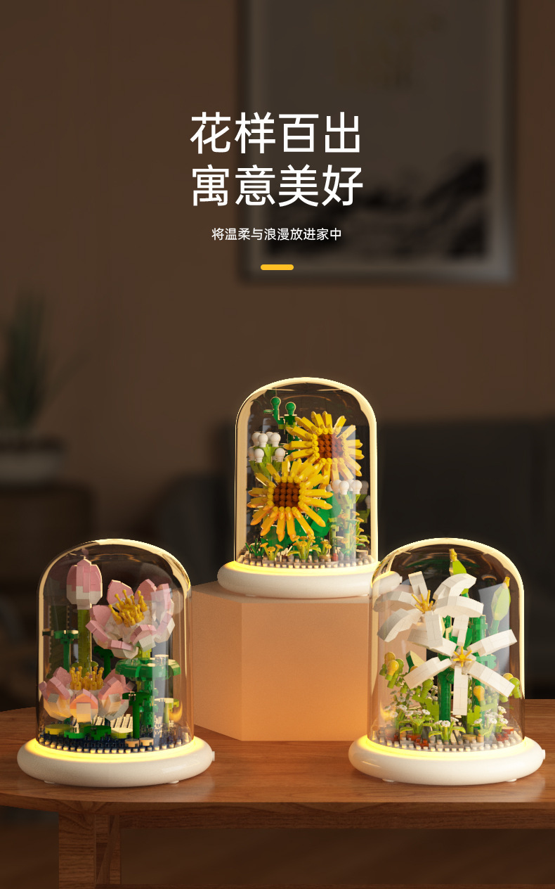 兒童積木玩具兼容某高小顆粒盆栽永生花玫瑰向日葵積木花束拼插花