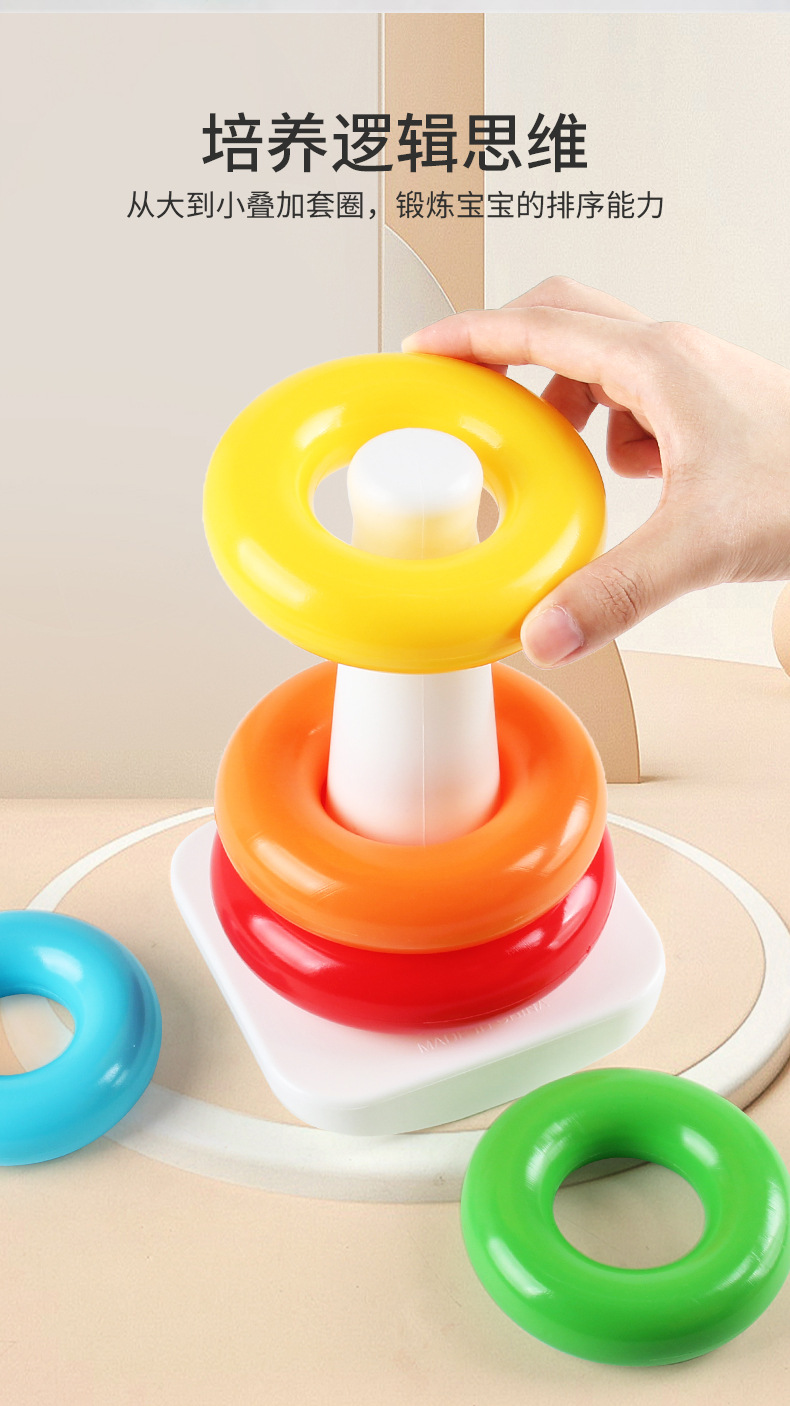 新品彩虹轉轉樂曡曡樂彩色套曡圈早教寶寶堆堆塔益智早教玩具