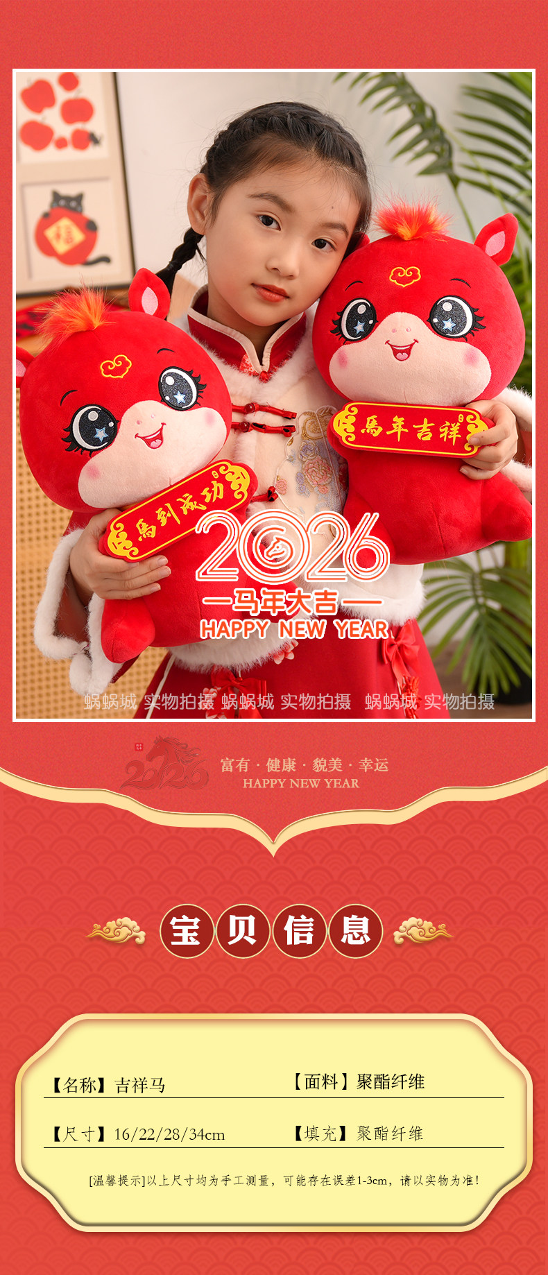 2026馬年吉祥物公仔馬到成功生肖馬玩偶娃娃毛絨玩具新年年會禮物
