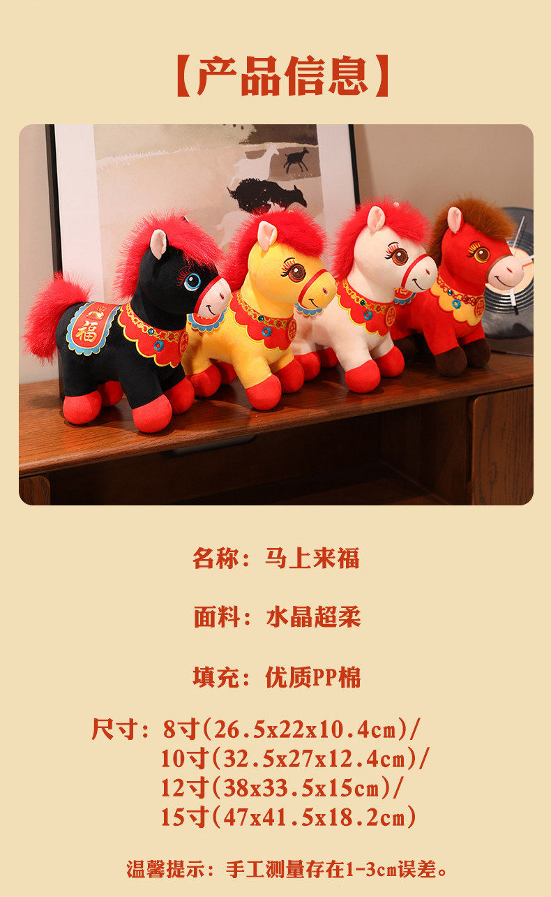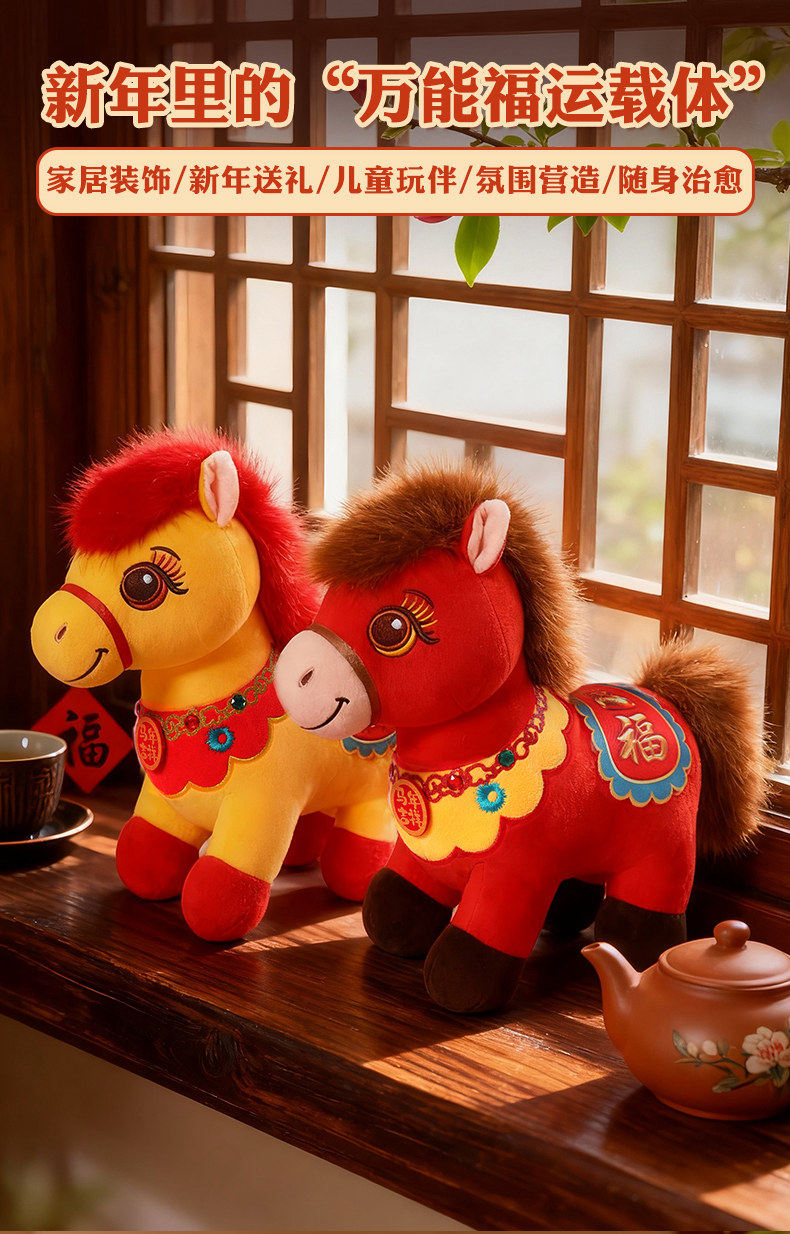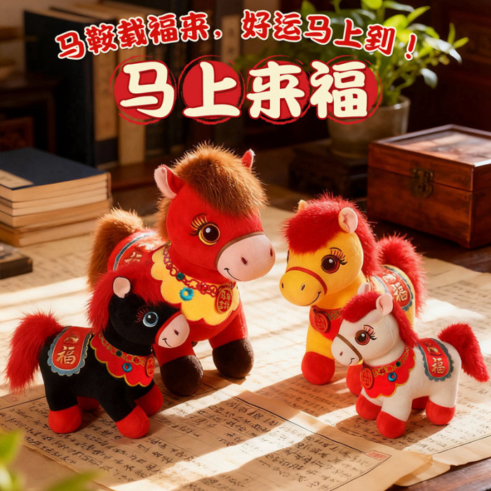 2026馬年吉祥物公仔毛絨玩具來福小馬玩偶生肖布娃娃兒童新年禮物