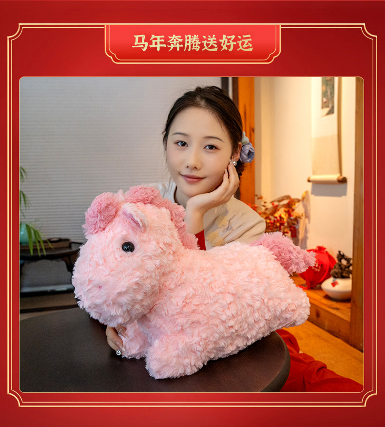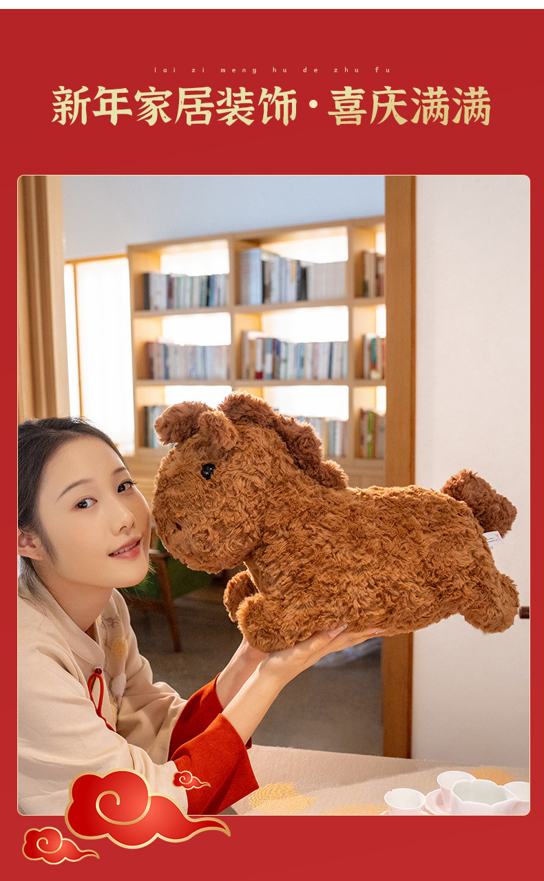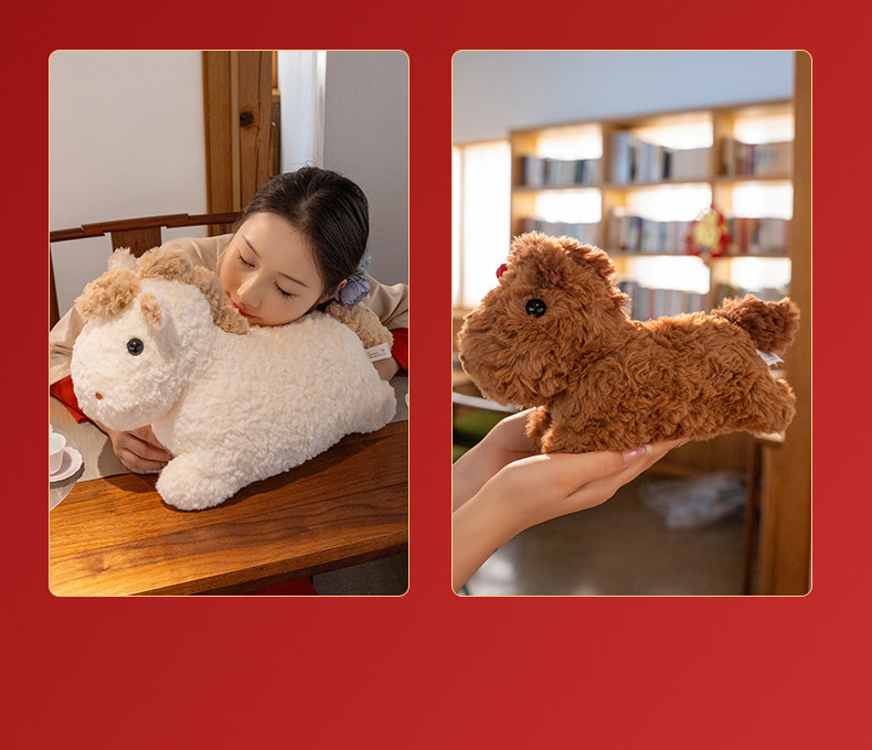 2026馬年吉祥物超軟豆豆馬可愛毛絨玩具布偶公仔新年禮物睡覺抱枕