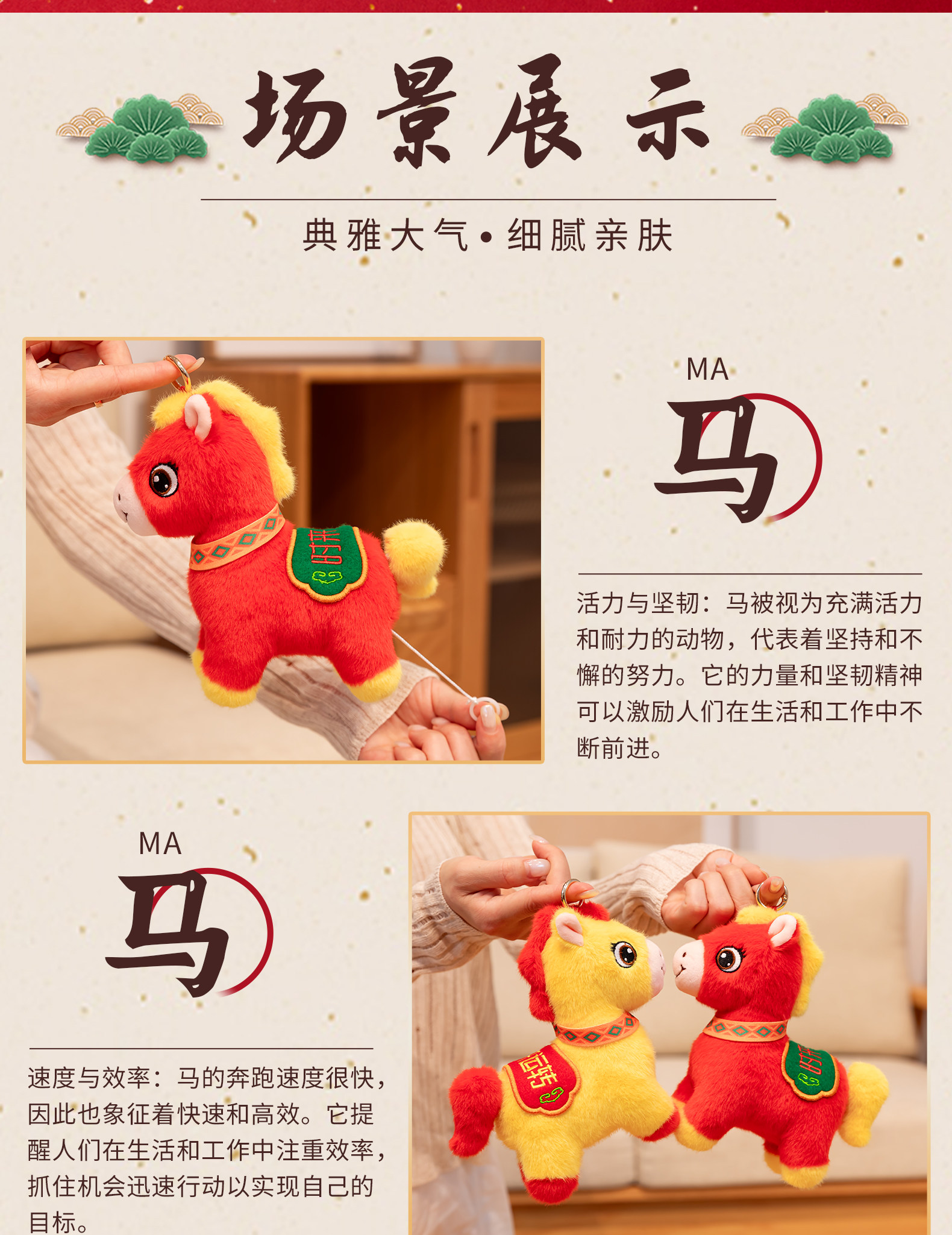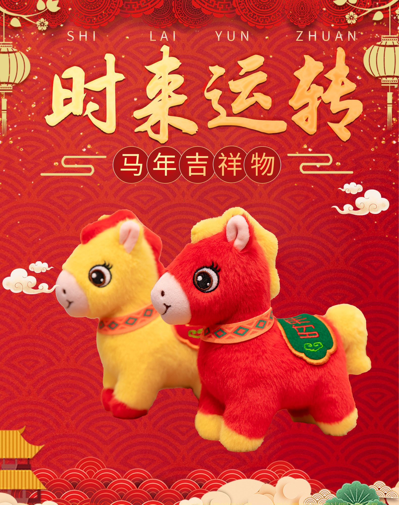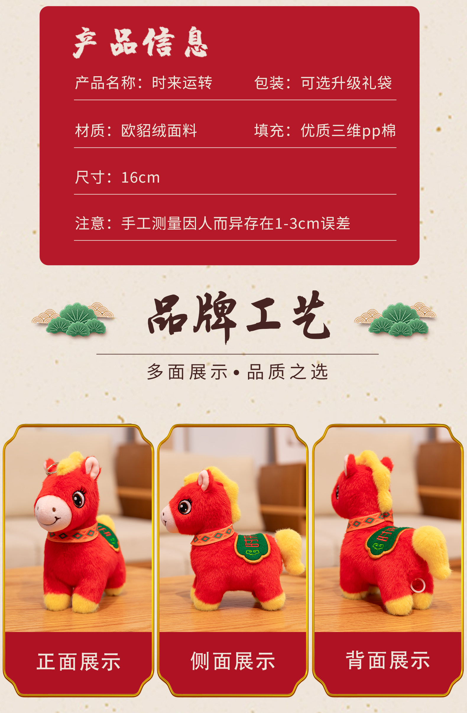 2026馬年吉祥物公仔時來運轉玩偶拉線旋轉小馬毛絨玩具年會禮品