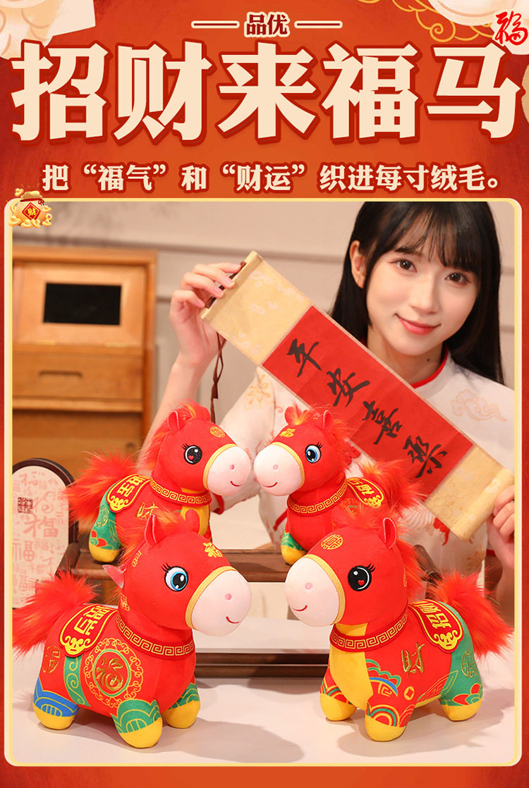 2026馬年吉祥物公仔生肖馬毛絨玩具來福馬玩偶年會銀行禮品娃娃