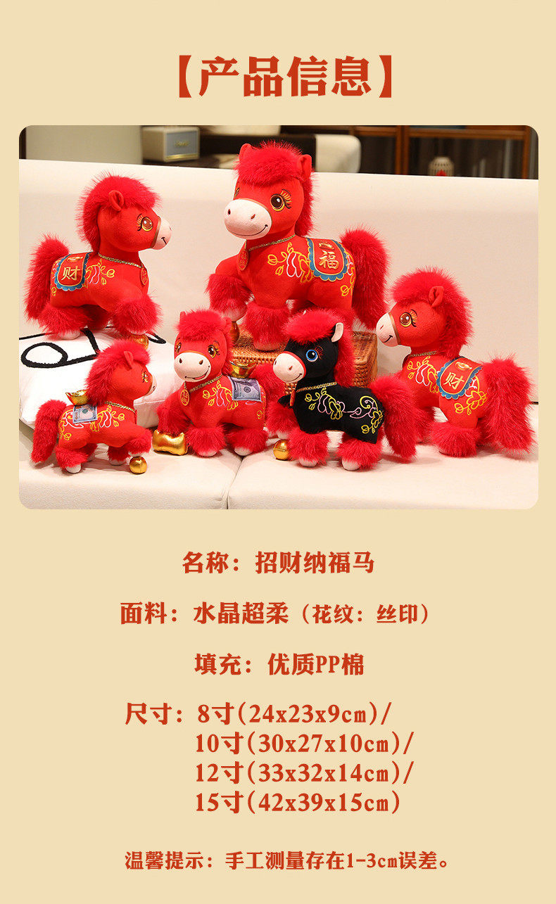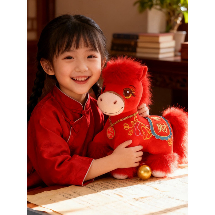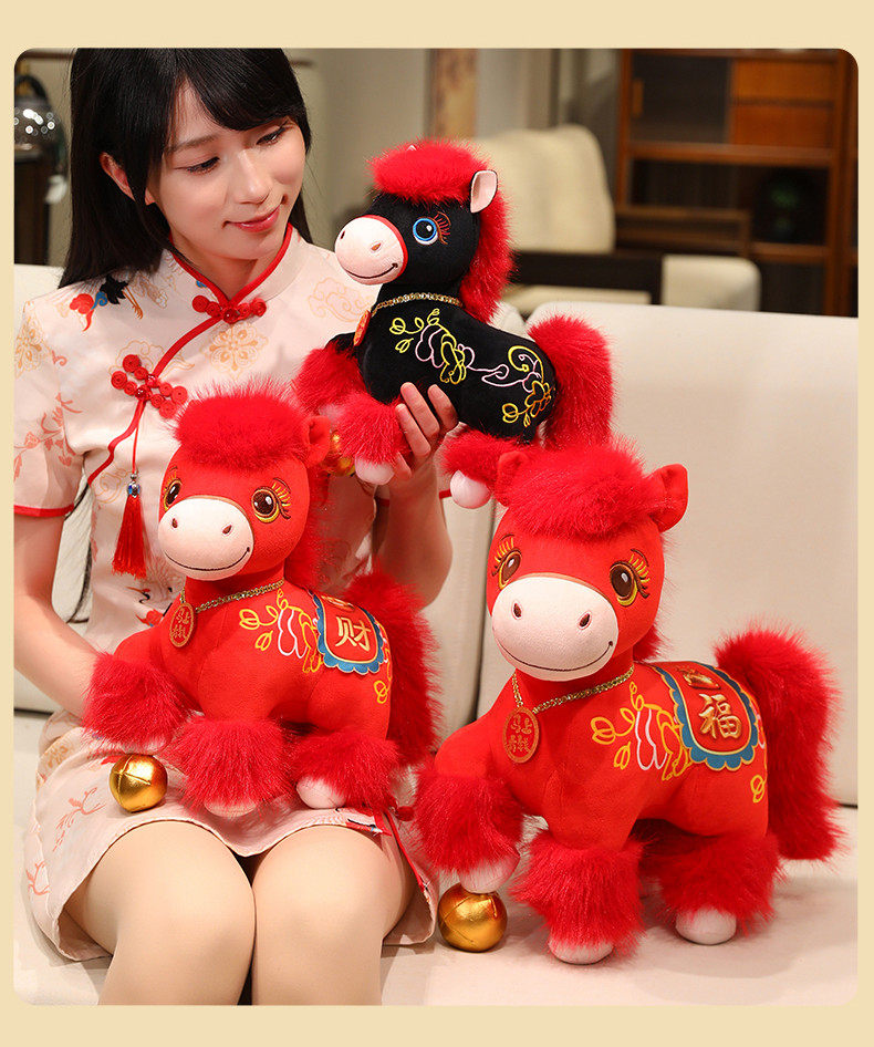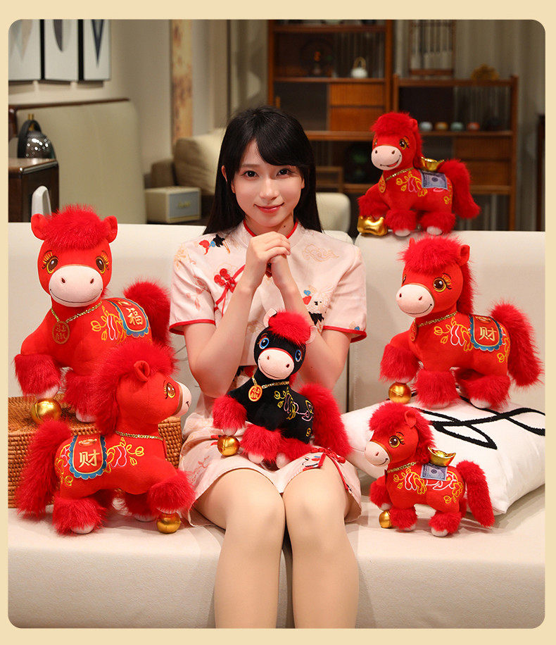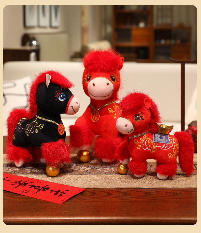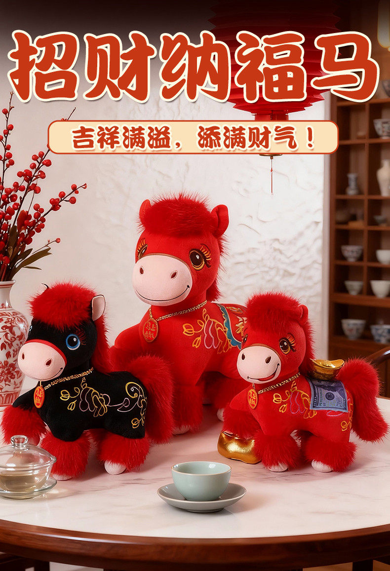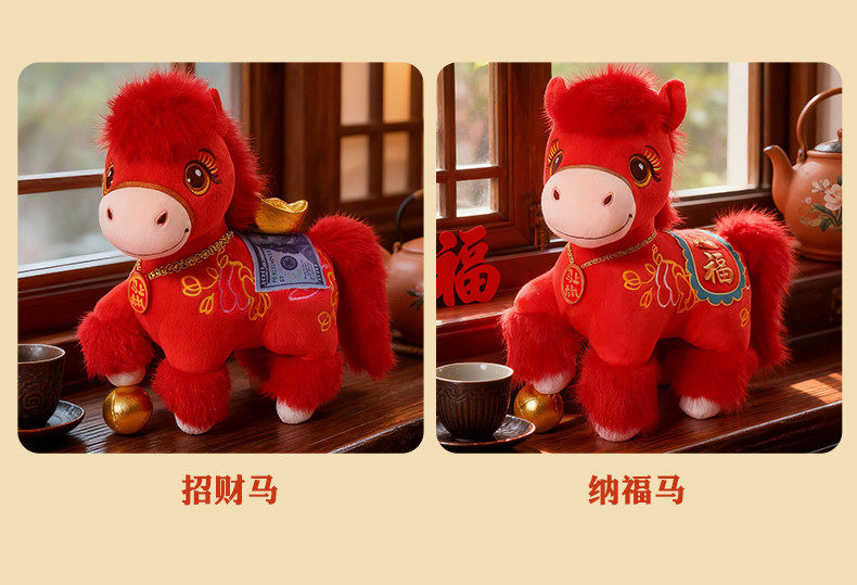 2026馬年吉祥物公仔招財納福小馬玩偶生肖馬毛絨玩具擺件新年禮物
