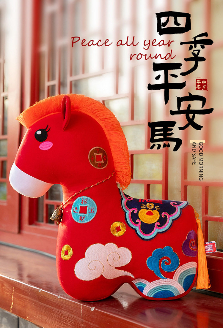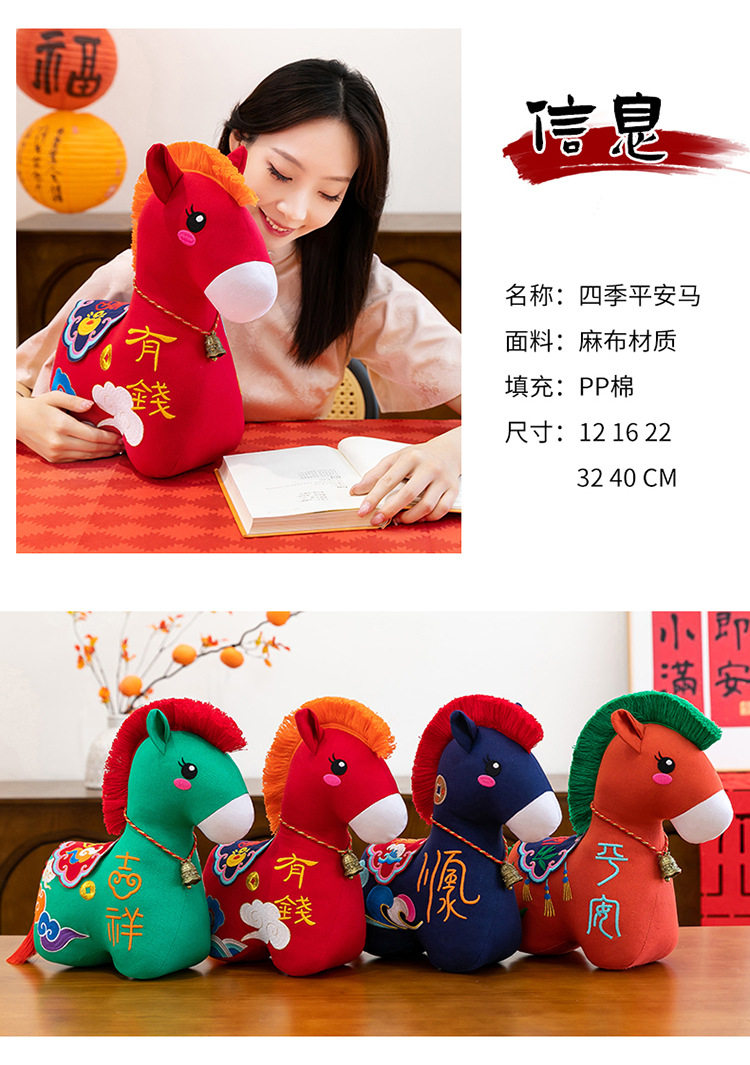2026馬年吉祥物公仔四季平安生肖小馬小紅馬玩偶毛絨玩具年貨娃娃