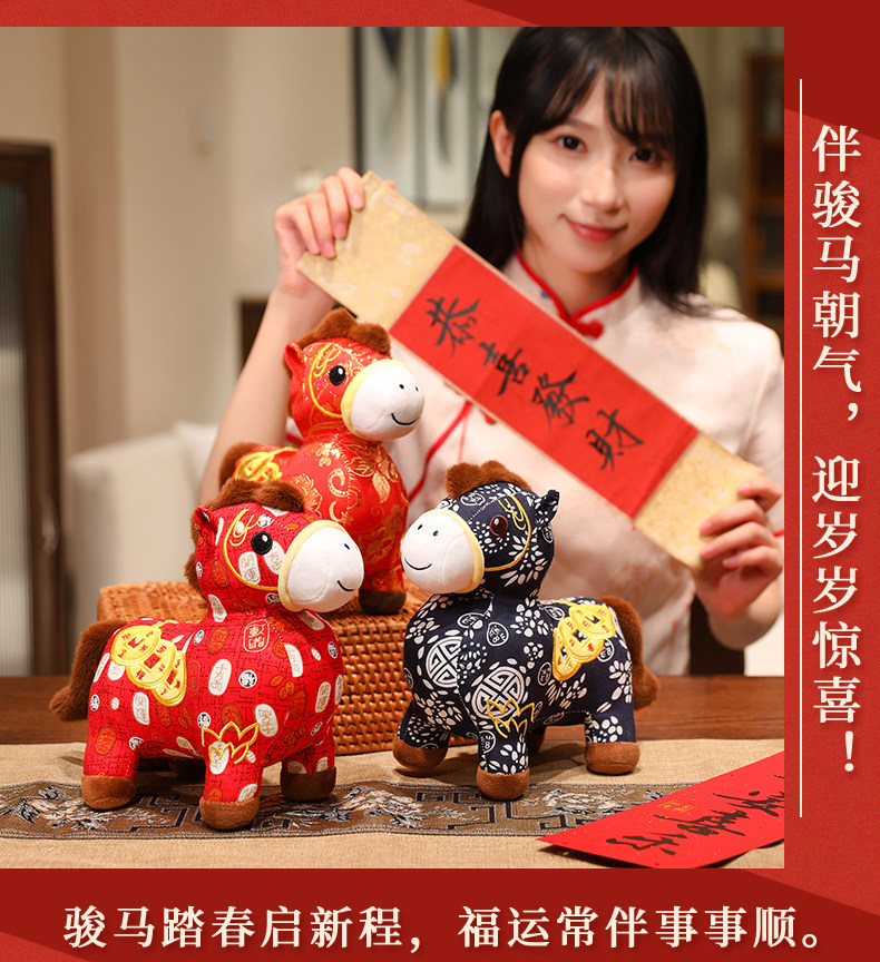 2026馬年吉祥物可愛小馬毛絨玩具生肖馬公仔布娃娃年會禮品