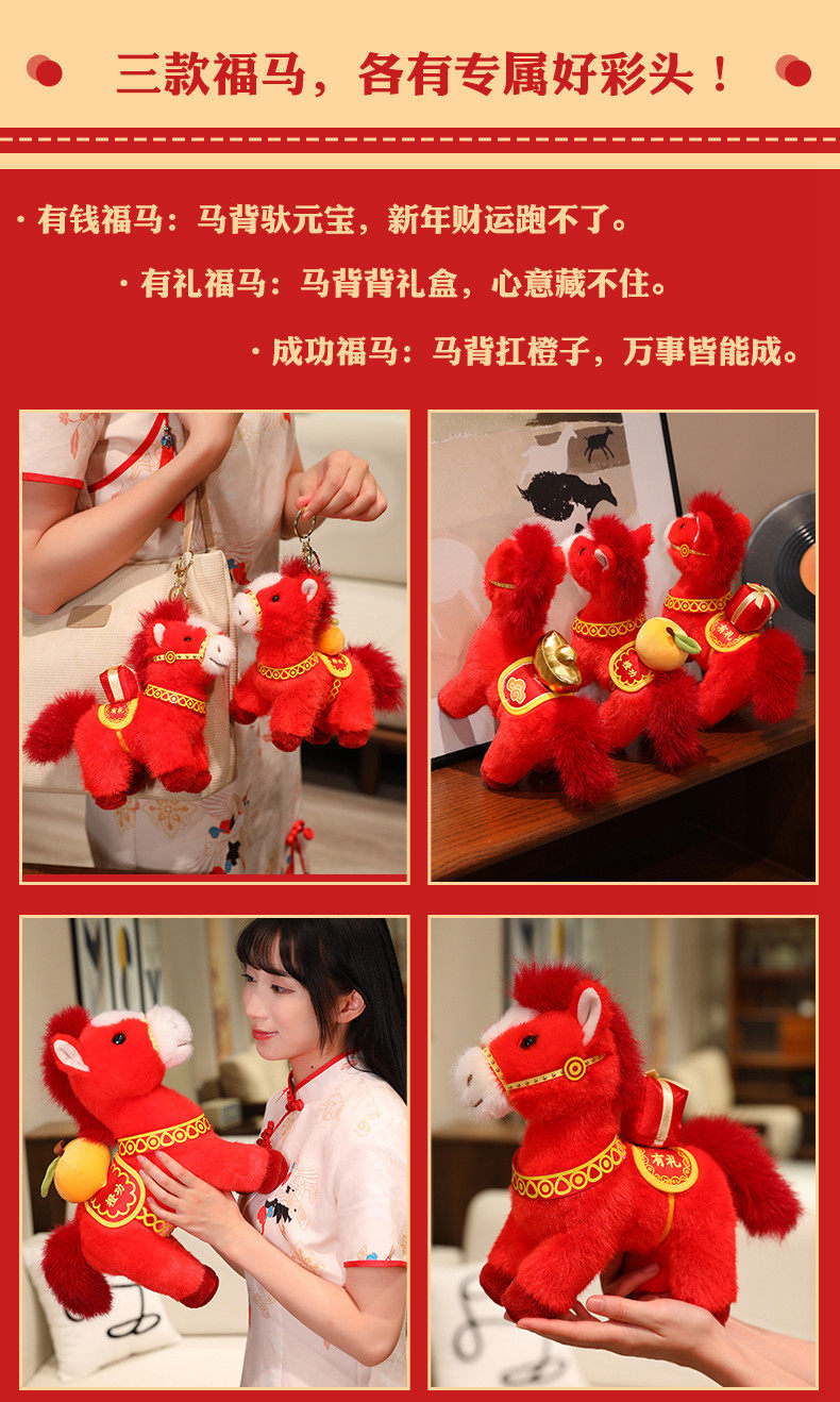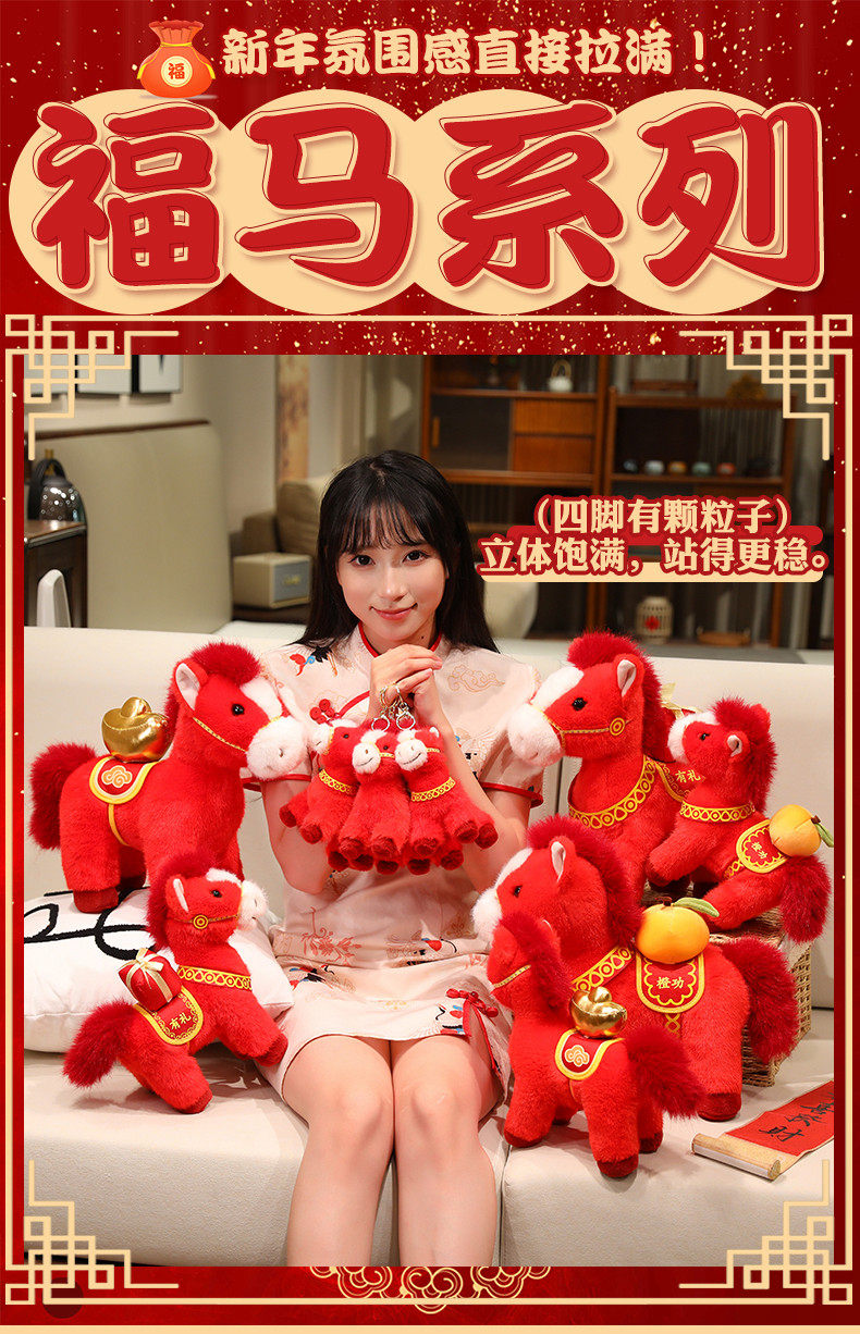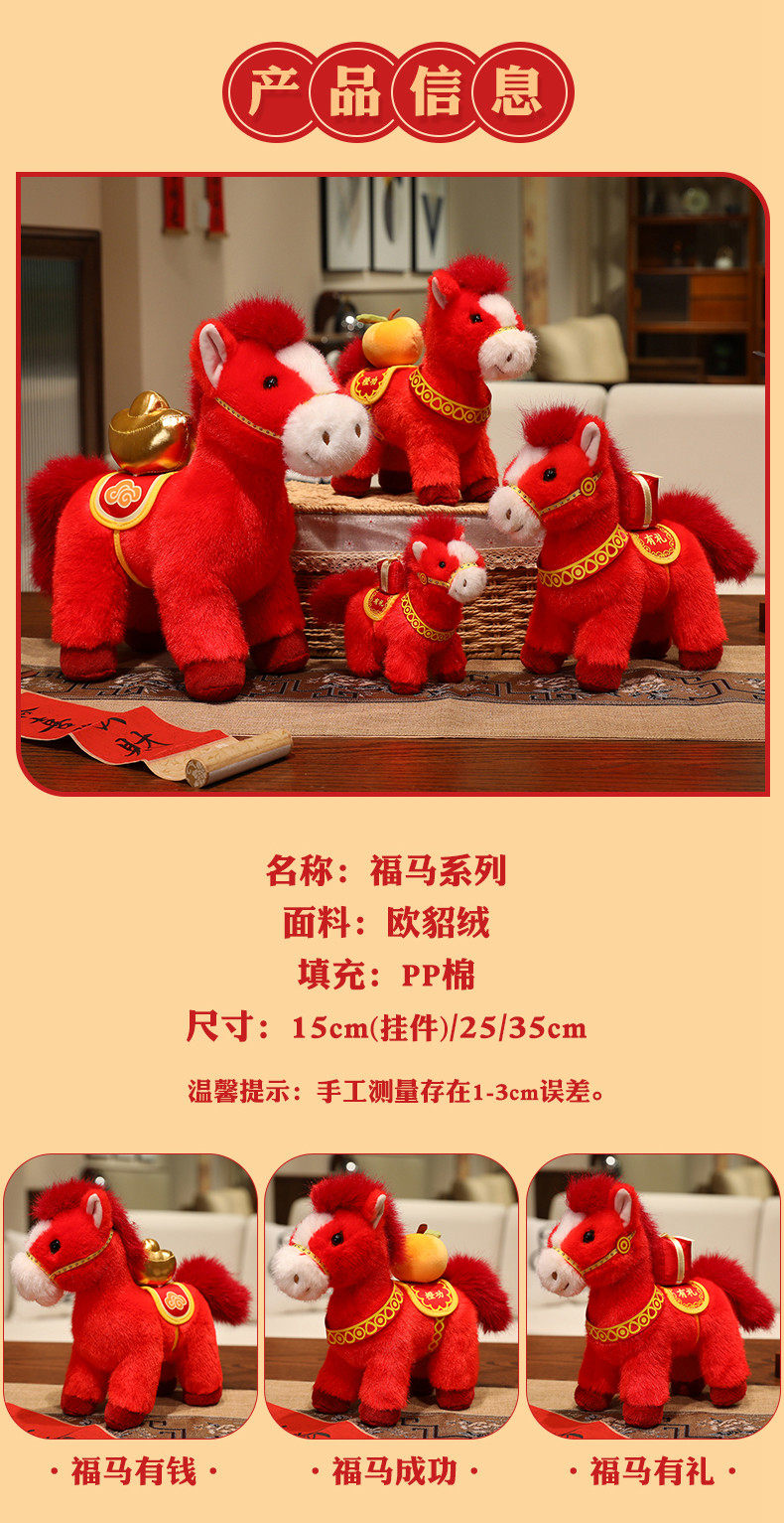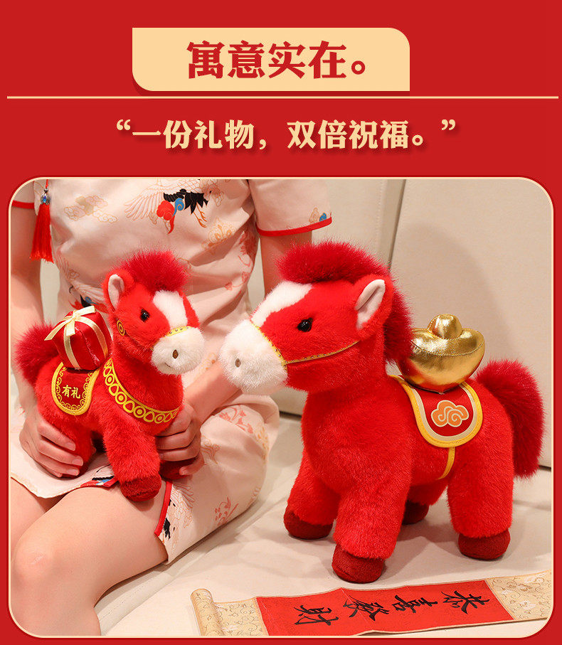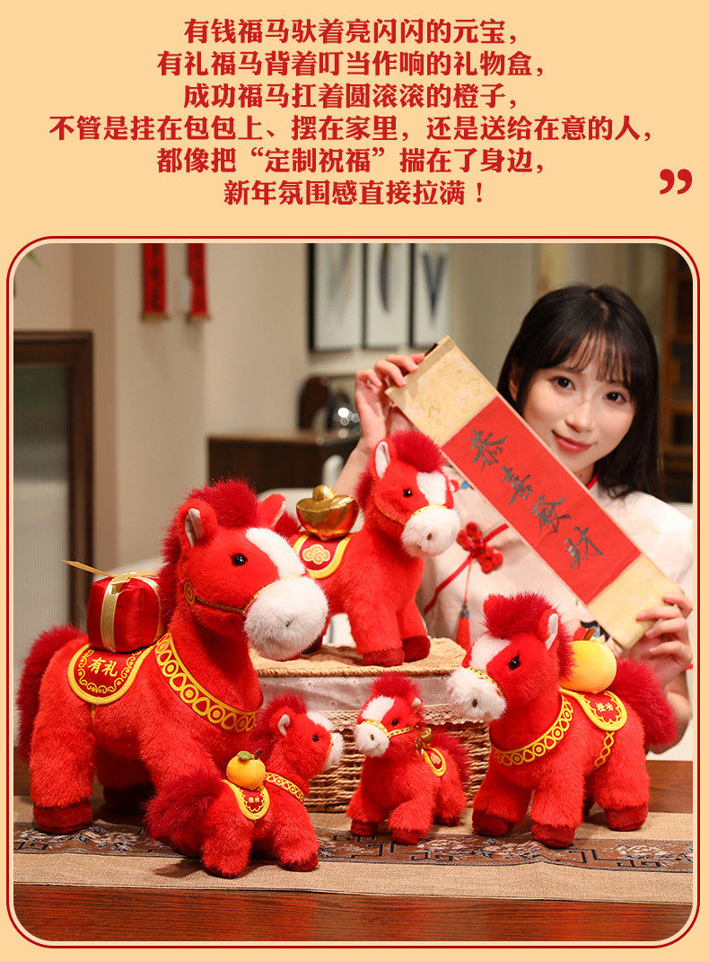 2026馬年吉祥物福馬公仔玩偶毛絨玩具生肖抱枕布娃娃新年禮物