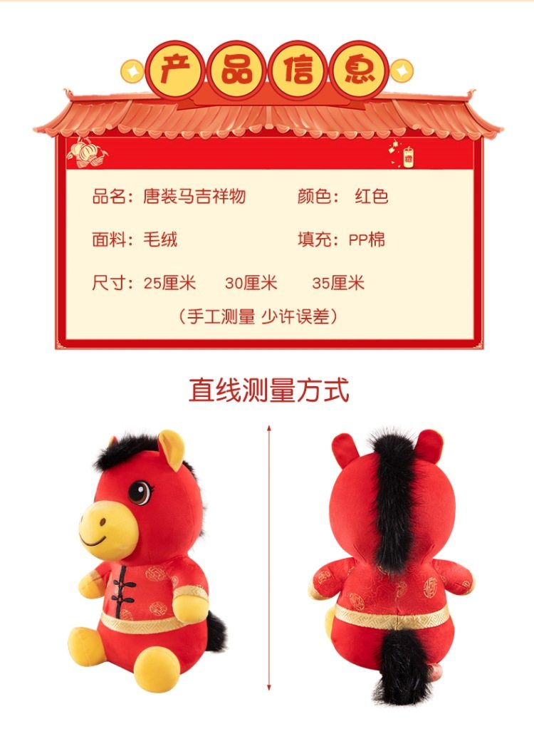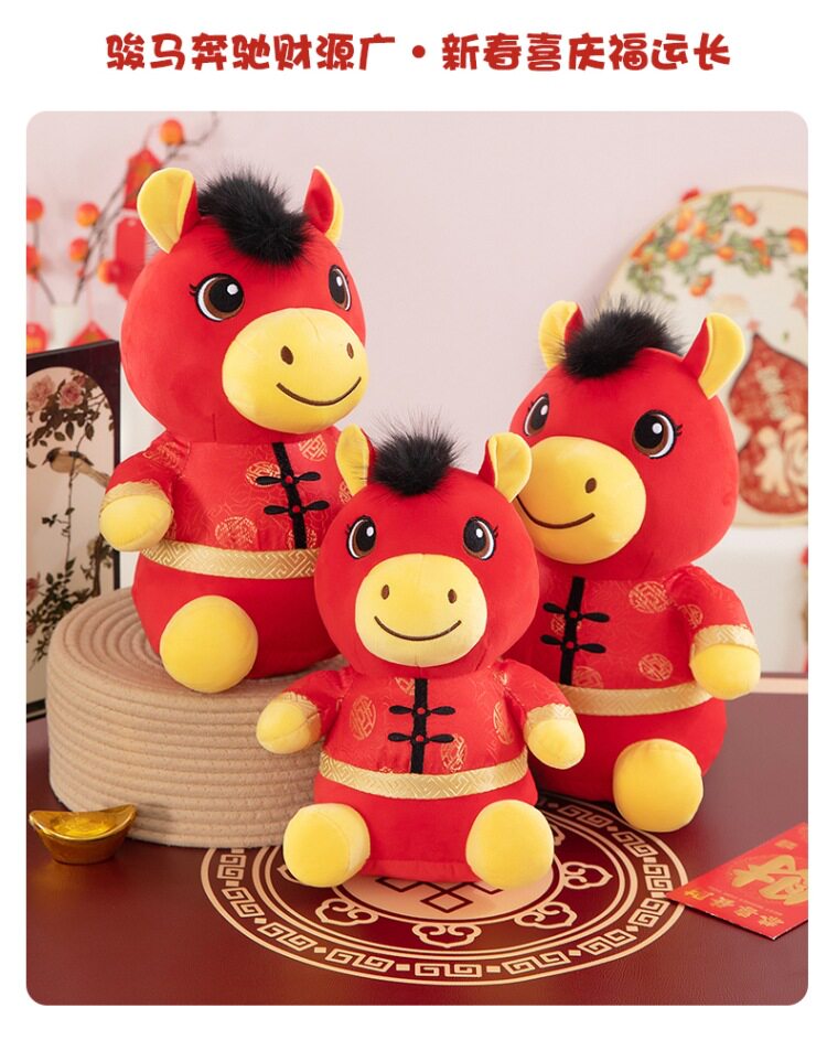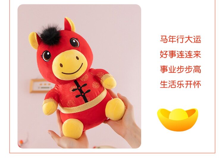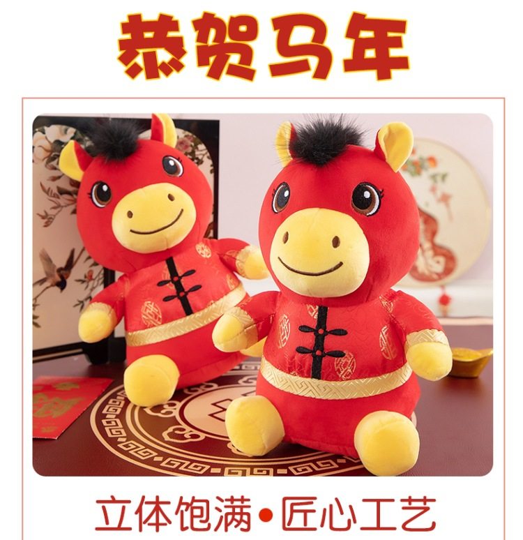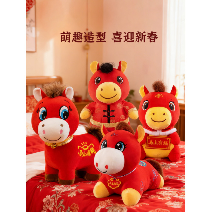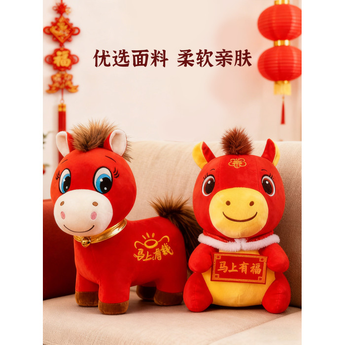2026馬年吉祥物馬上有錢公仔毛絨玩具生肖馬小玩偶毛絨玩具