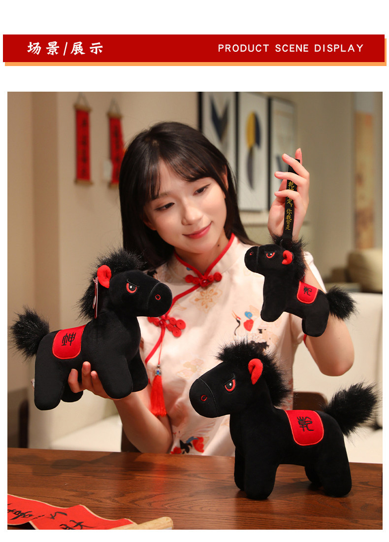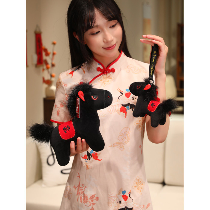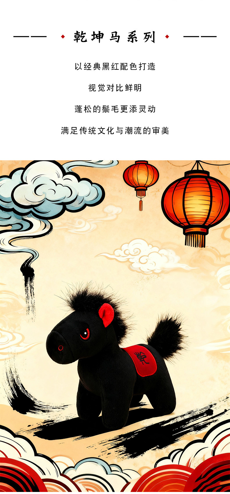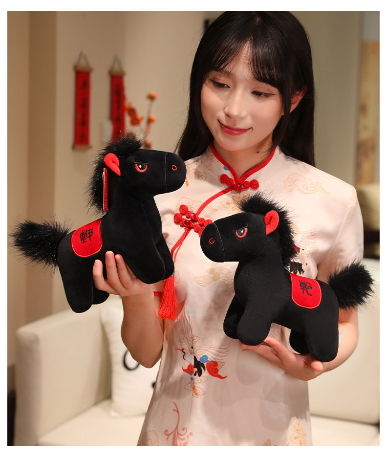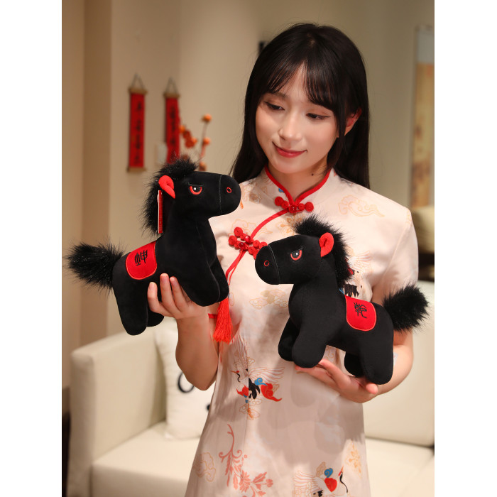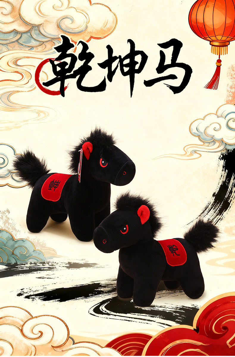 2026馬年吉祥物公仔乾坤黑馬毛絨玩具生肖小馬玩偶布娃娃掛件禮品