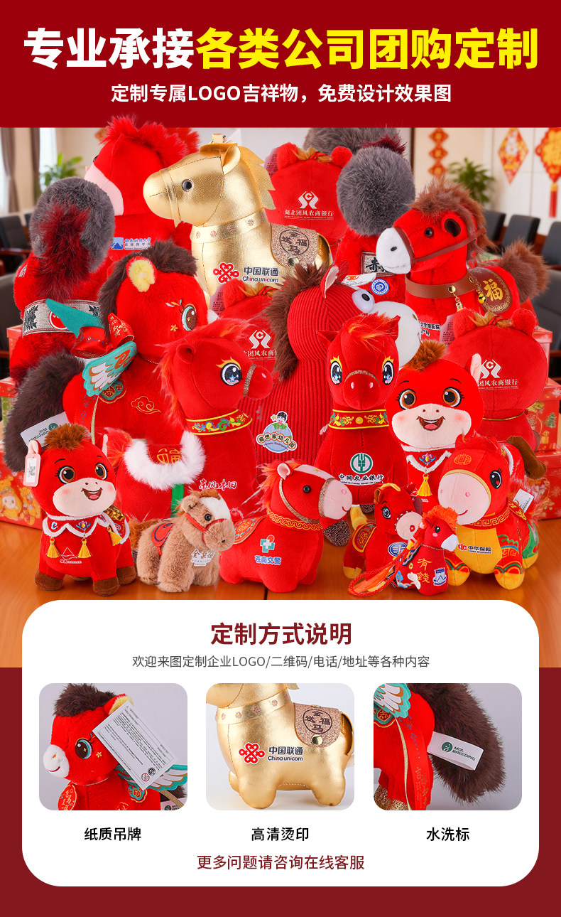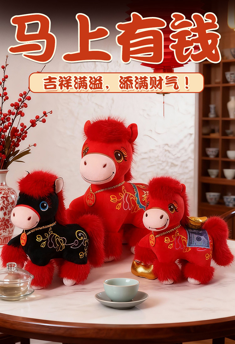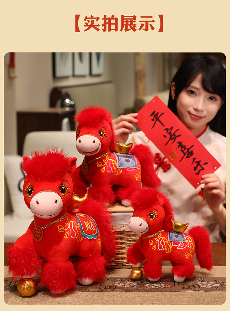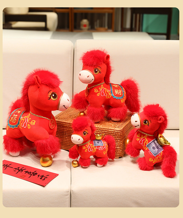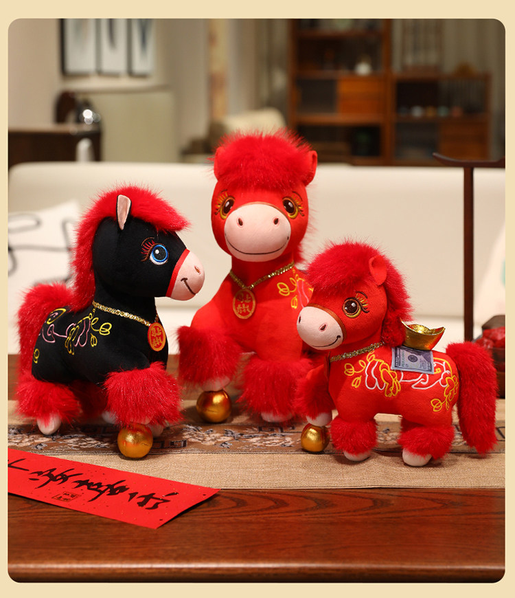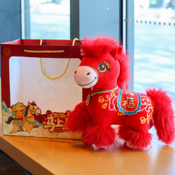 新款2026馬年吉祥物公仔舞獅小馬玩偶毛絨玩具生肖馬娃娃新年禮物