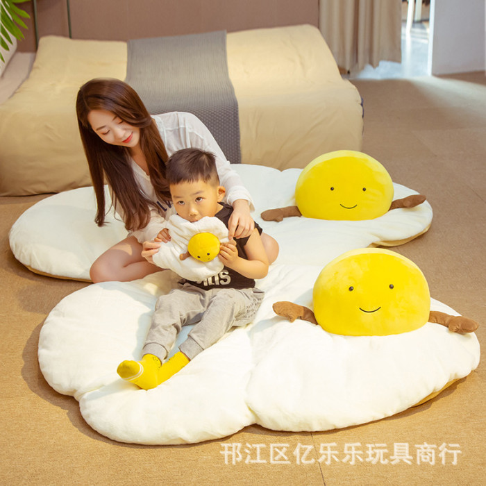 網紅可愛荷包蛋坐墊地墊毛絨玩具家居裝飾品大號懶人榻榻米