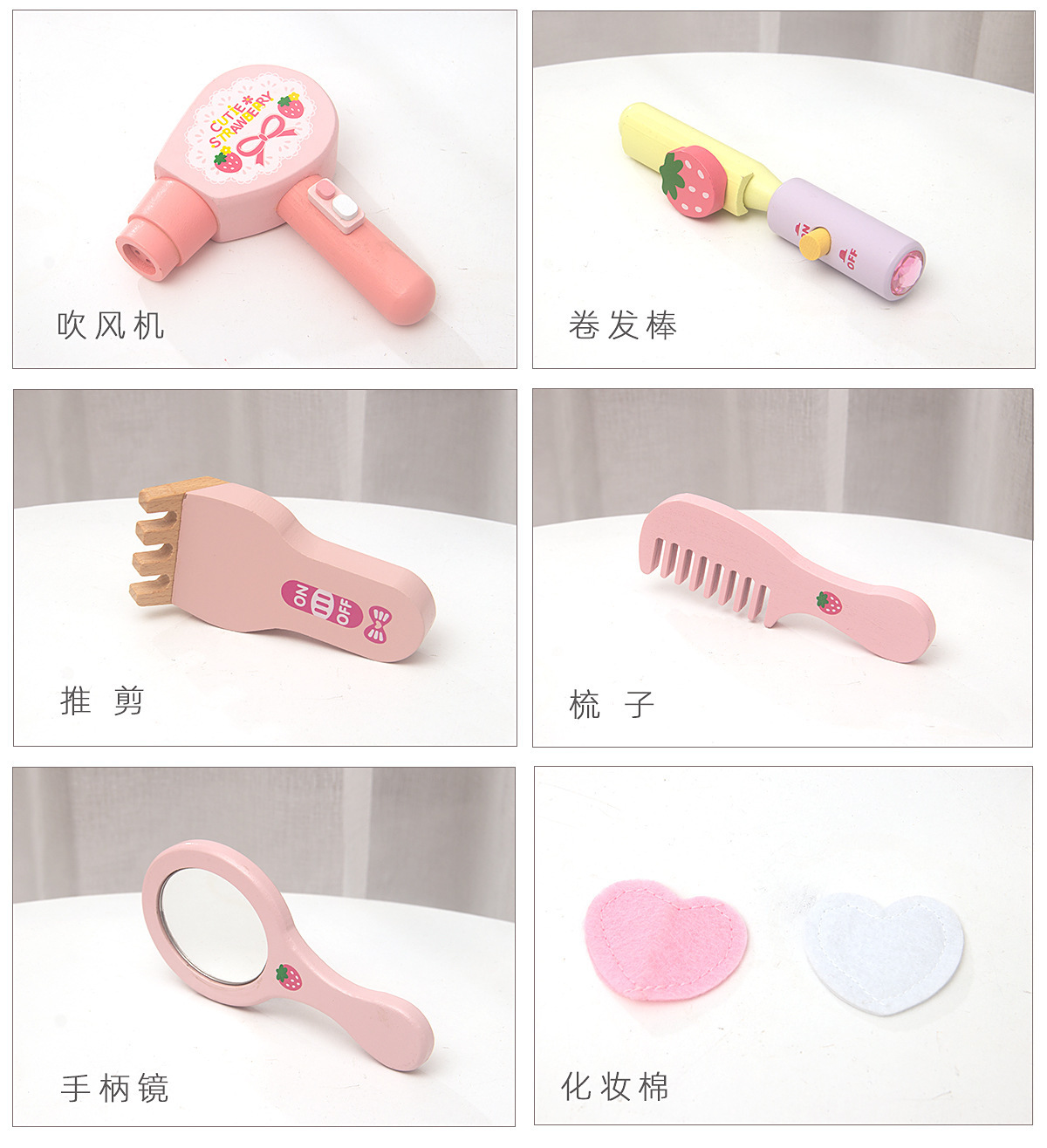 CE CPC木質兒童扮家家酒化妝台木盒套裝粉色仿真女孩公主梳妝盒玩具