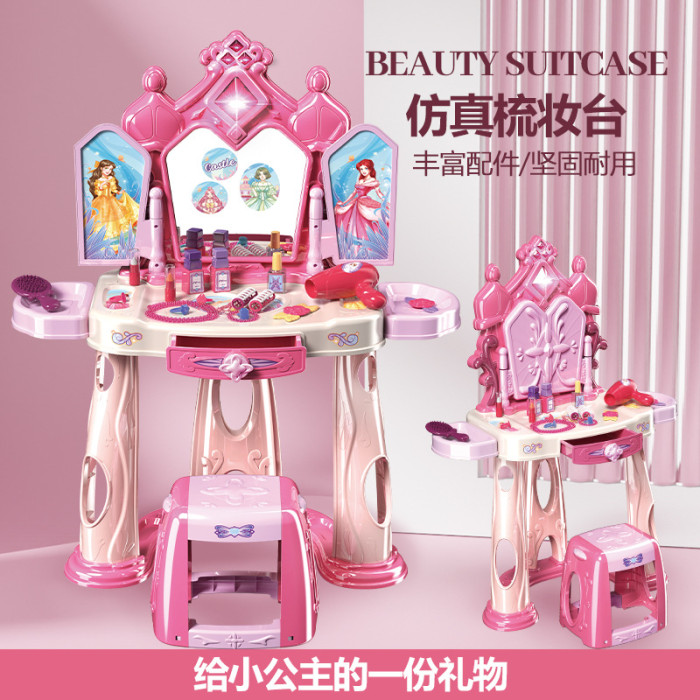 女孩兒童生日禮物仿真梳妝台公主化妝桌梳妝盒扮家家酒玩具套裝