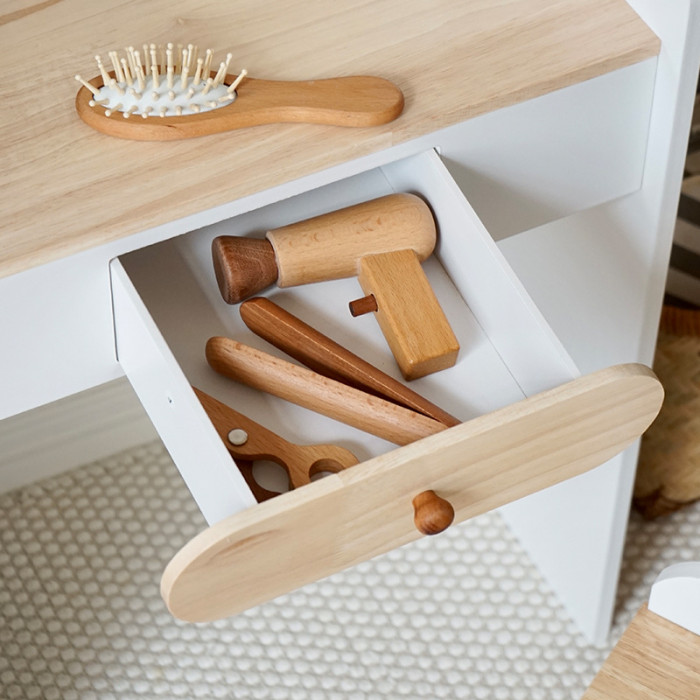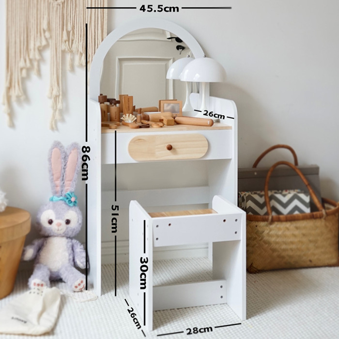 2025新款兒童木製梳妝台仿真玩具北歐風女孩扮家家酒公主化妝台