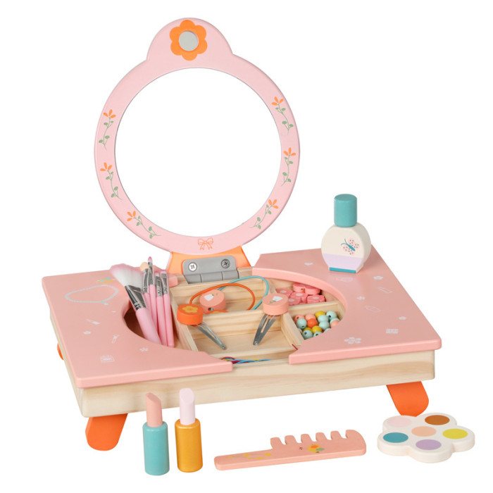 木製折曡收納梳妝台寶寶扮家家酒模仿化妝親子互動益智兒童互動玩具