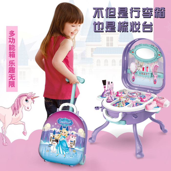 兒童扮家家酒玩具三合一多功能拉桿行李箱收納箱化妝台家居益智