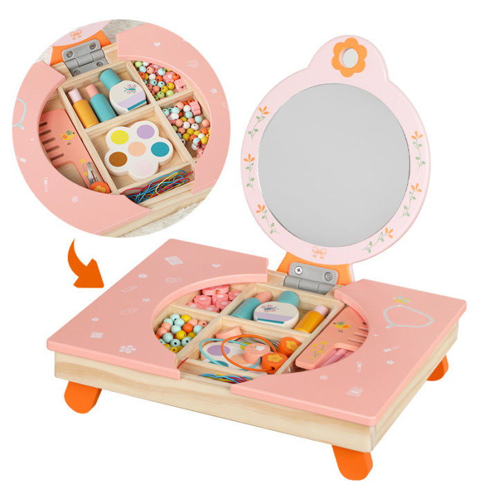 女孩桌面仿真可折曡梳妝台眼影口紅扮家家酒公主化妝套裝互動玩具