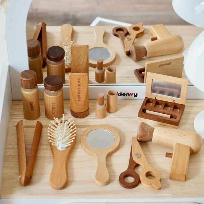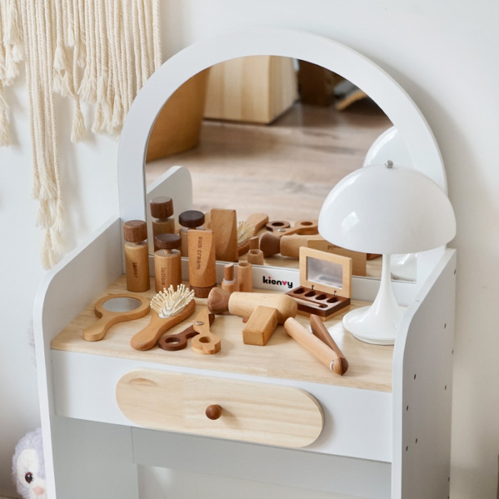 kienvy韓國兒童梳妝台女孩小公主化妝包品玩具木質扮家家酒仿真面膜