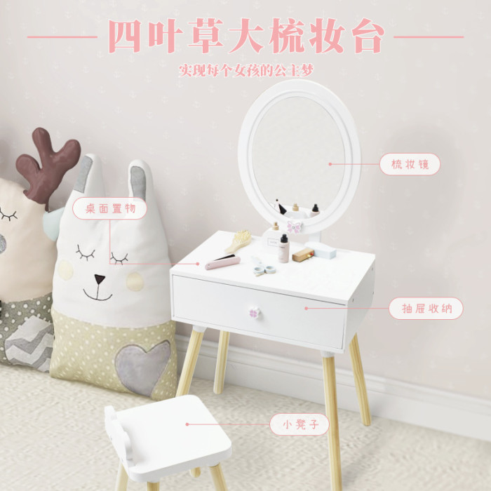 四葉草化妝台仿真木質梳妝台女孩扮家家酒玩具自帶化妝品可