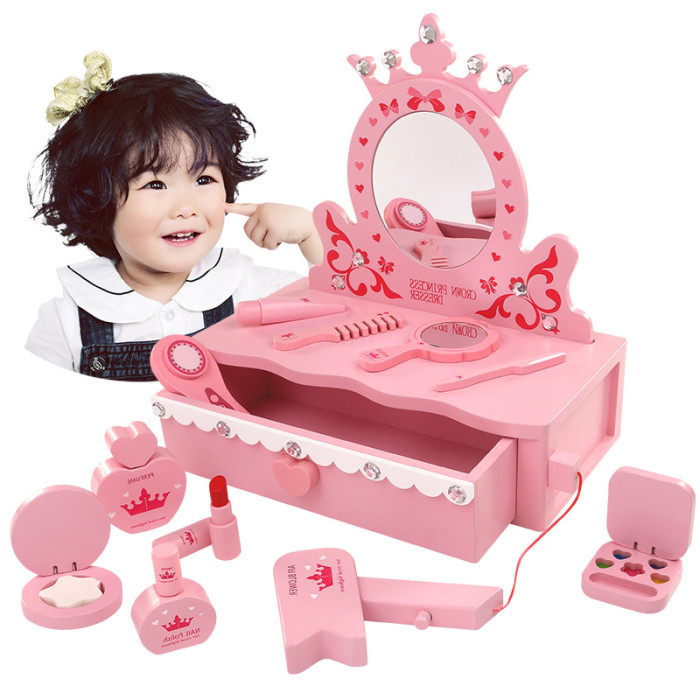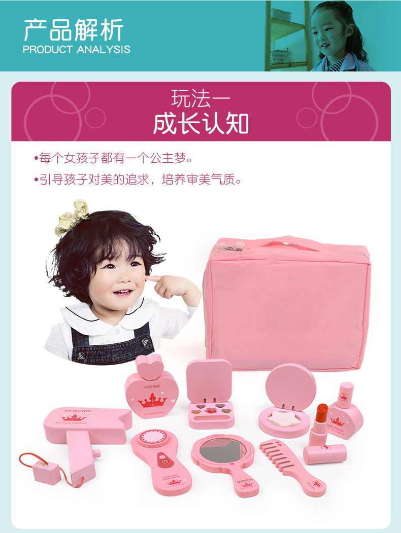 木製兒童仿真扮家家酒女孩化妝包玩具套裝梳妝台理髮包生日禮物