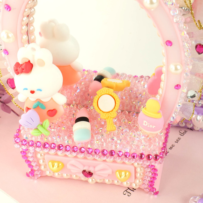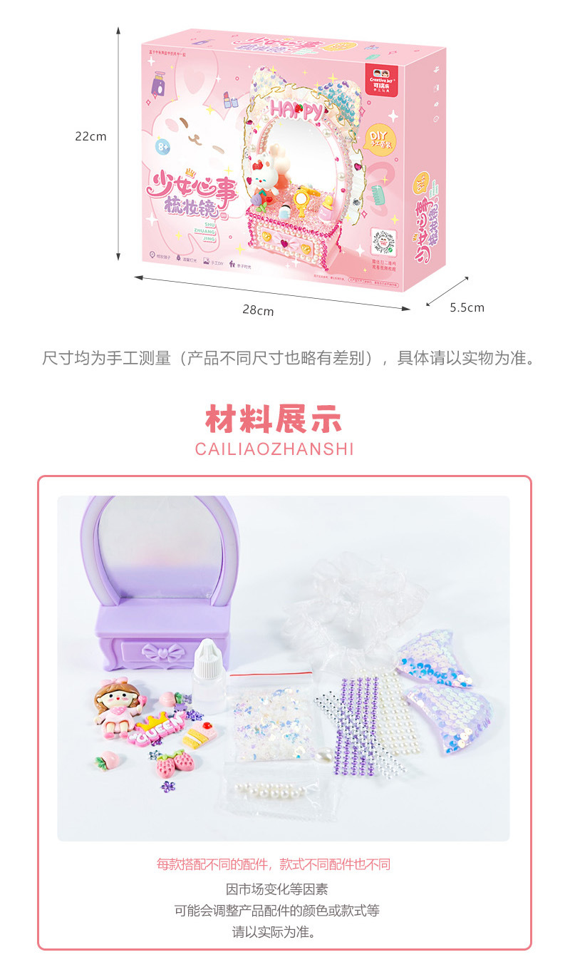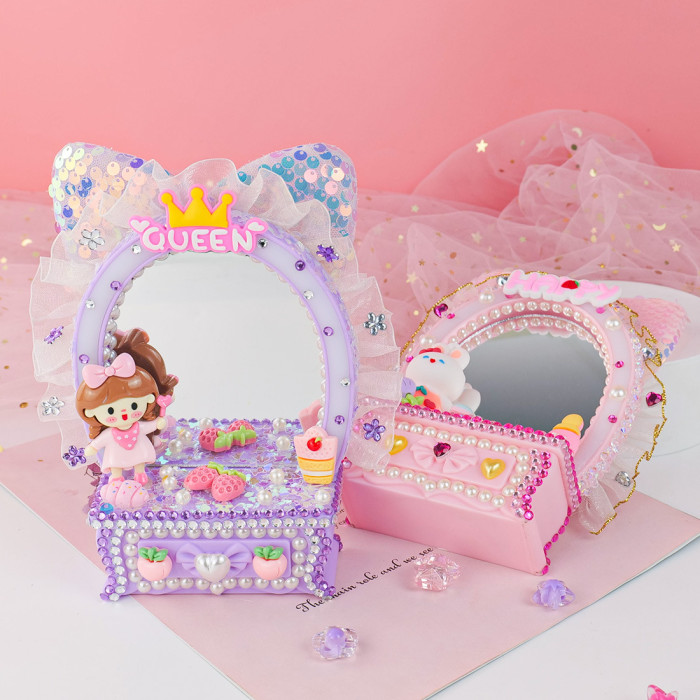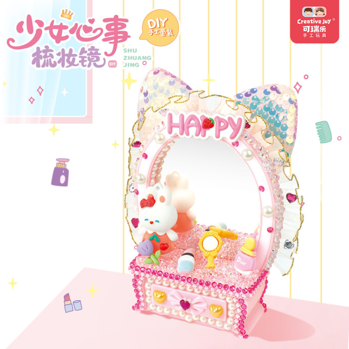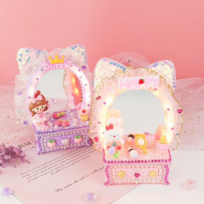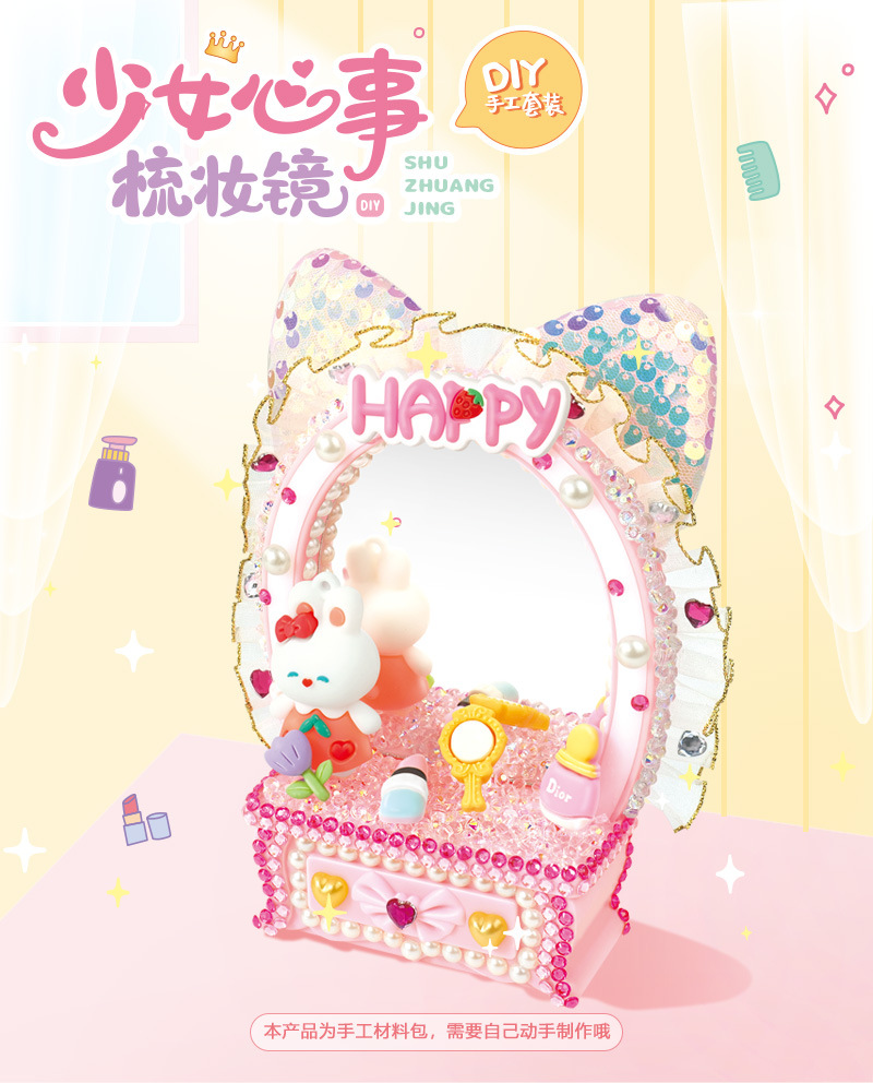 少女梳妝鏡兒童手工DIY梳妝台化妝鏡擺台奶油膠手工材料包禮物