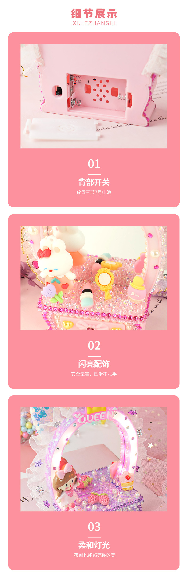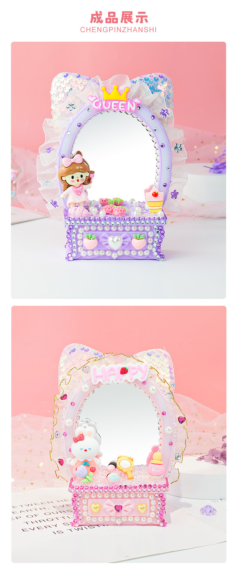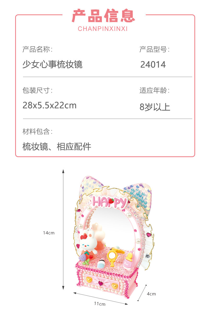 少女梳妝鏡兒童手工DIY梳妝台化妝鏡擺台奶油膠手工材料包禮物